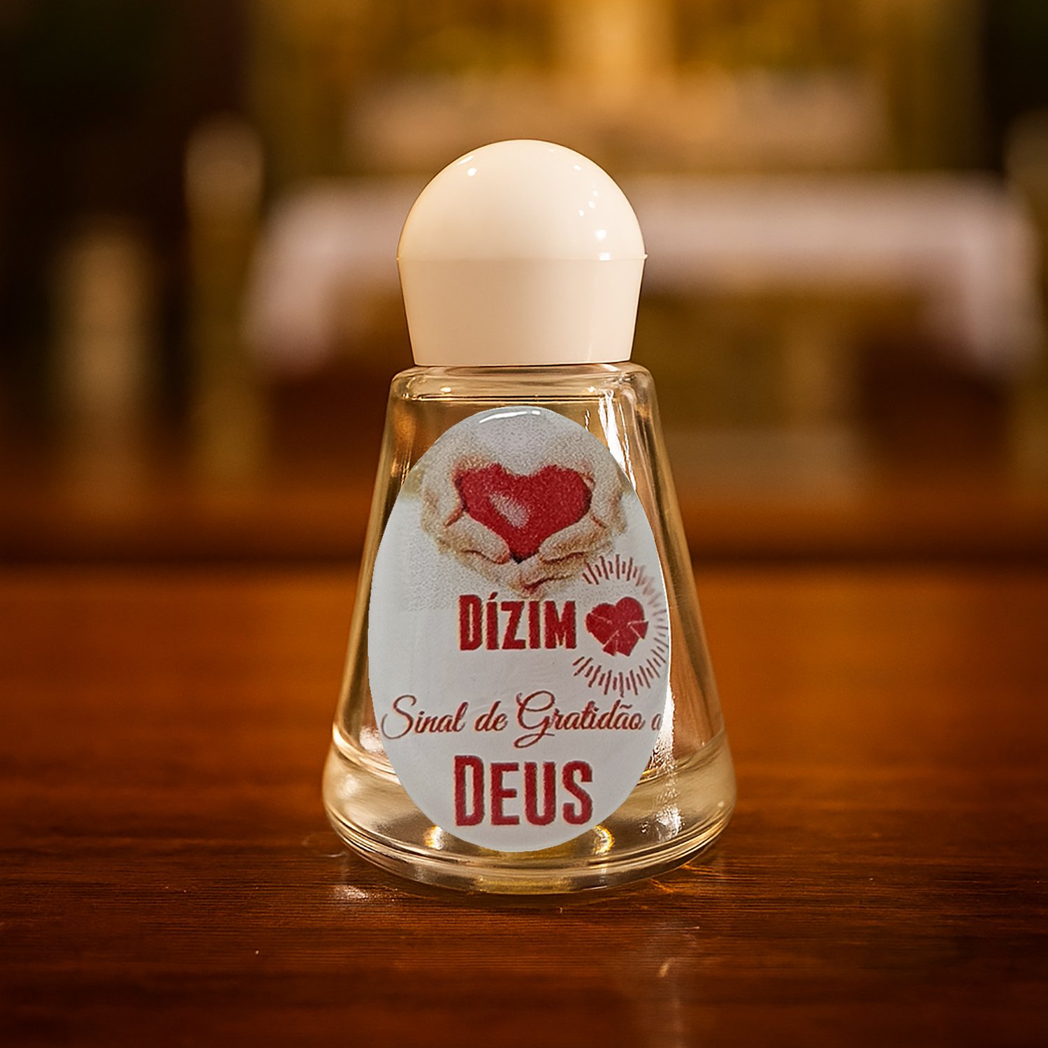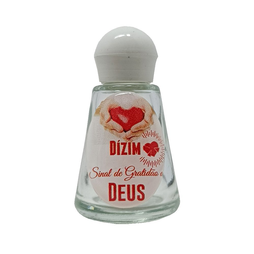 Porta água benta de vidro com estampa resinada tema Dízimo.