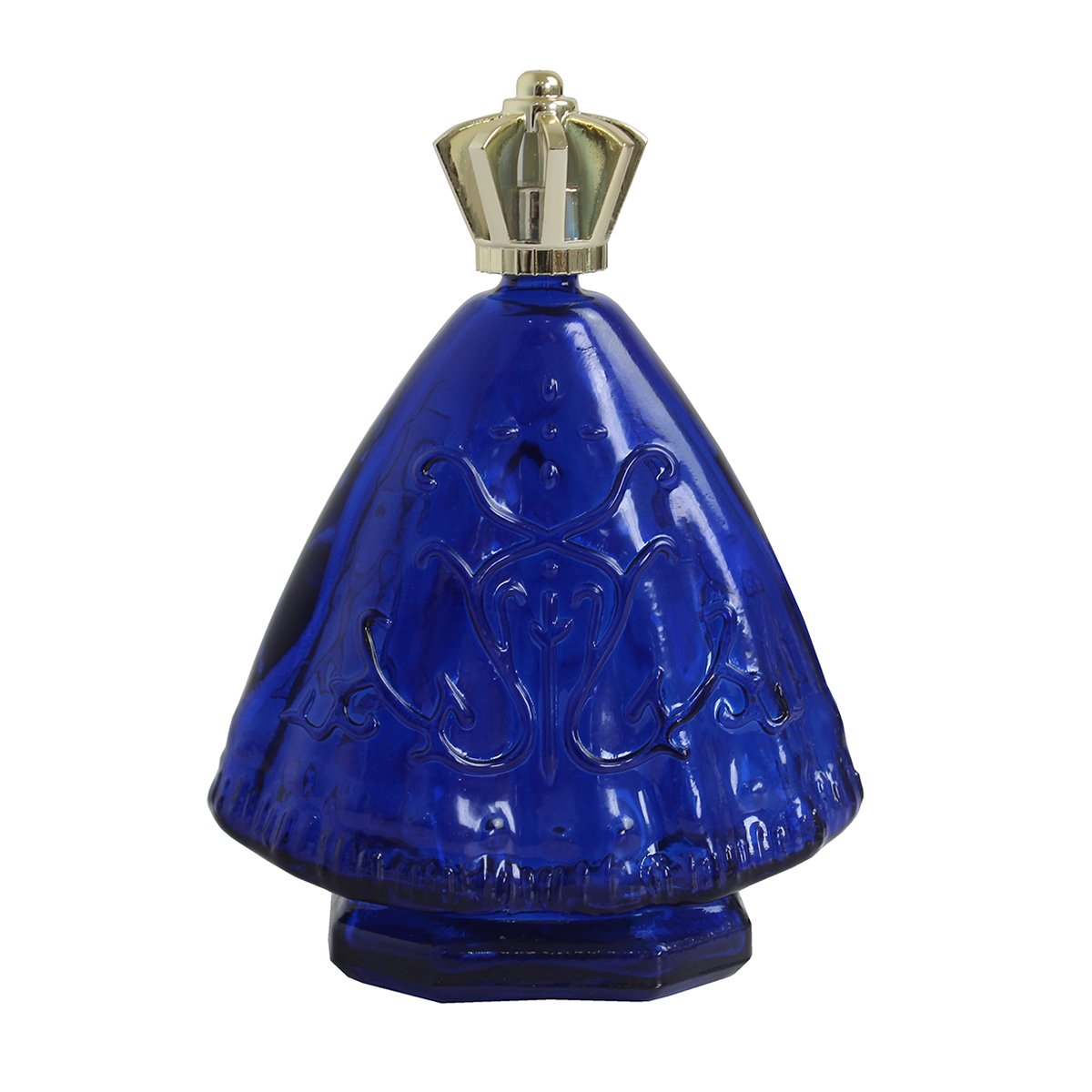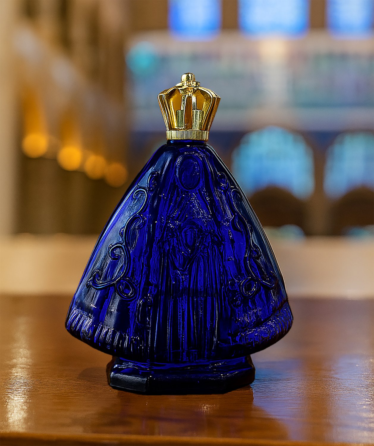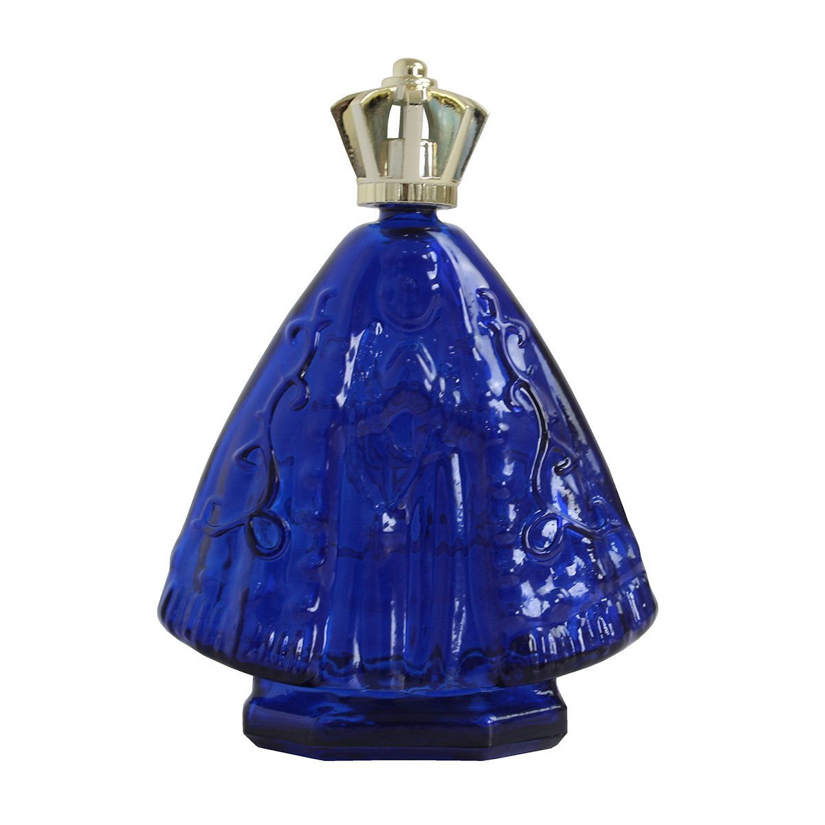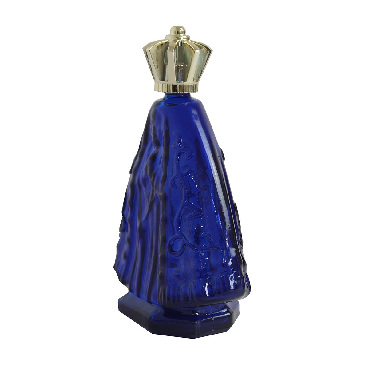 Porta água benta de Nossa Senhora Aparecida em vidro azul com Coroa dourada.