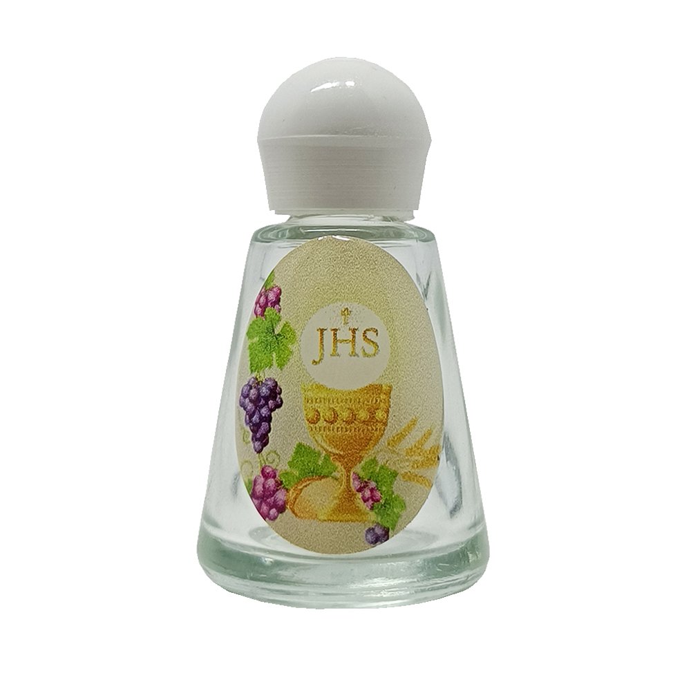 Porta água benta de vidro com tema Primeira Eucaristia.
