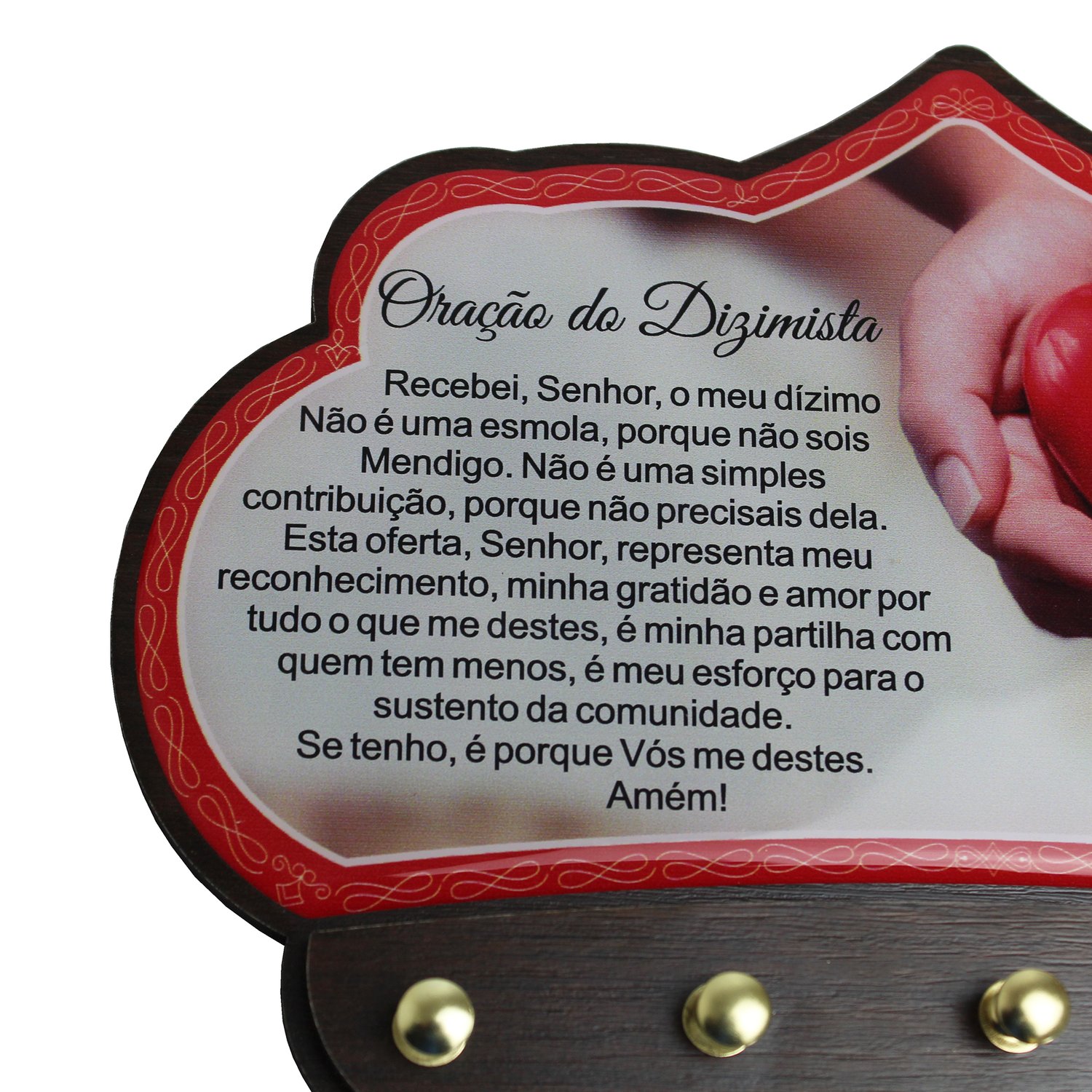 Porta chaves produzido em MDF 6mm na cor, 5 pinos para colocação de chaves, imagem e oração do Dízimo resinada.