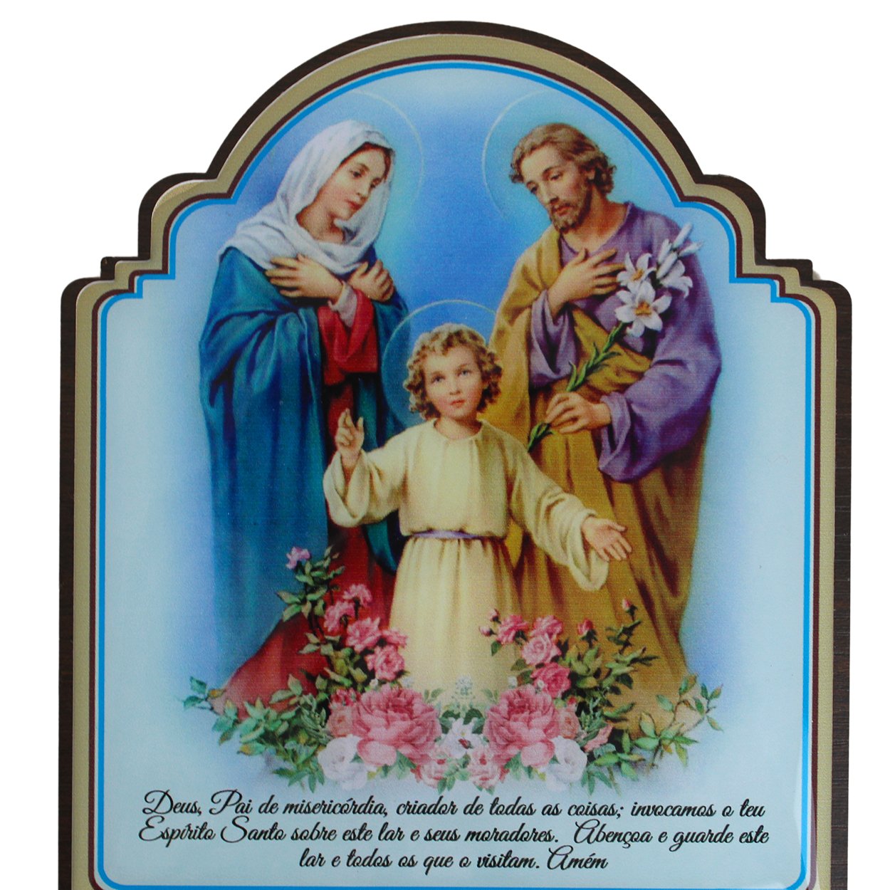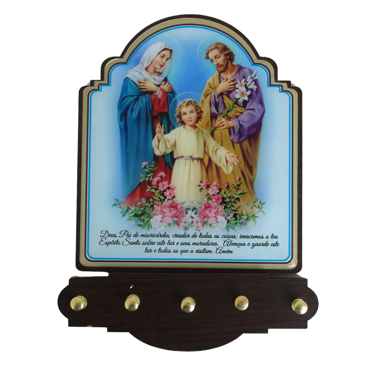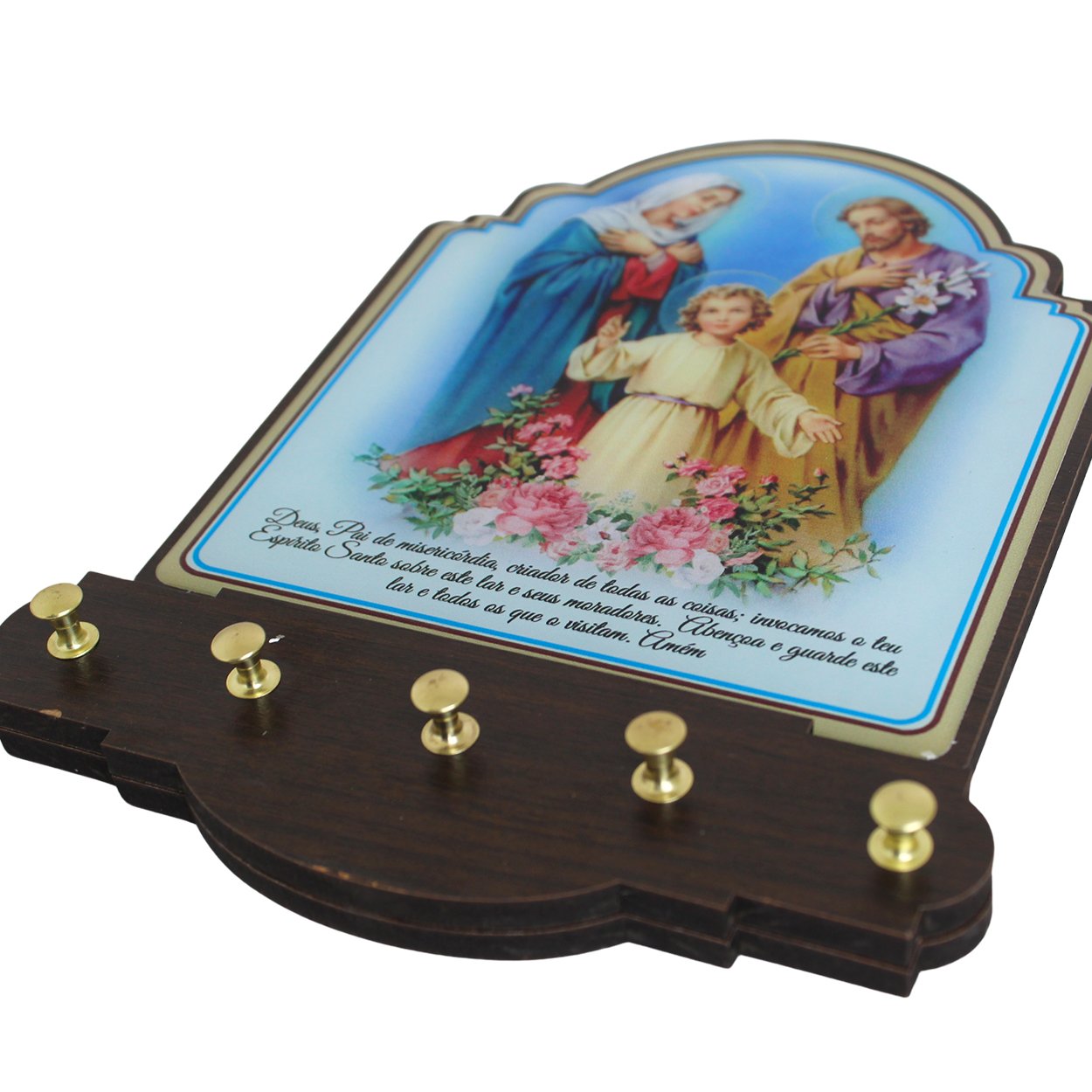 Porta chaves produzido em MDF 6mm na cor marrom, 5 pinos para colocação de chaves, imagem da Sagrada Família resinada. Fabricação própria.
