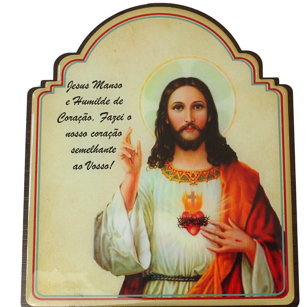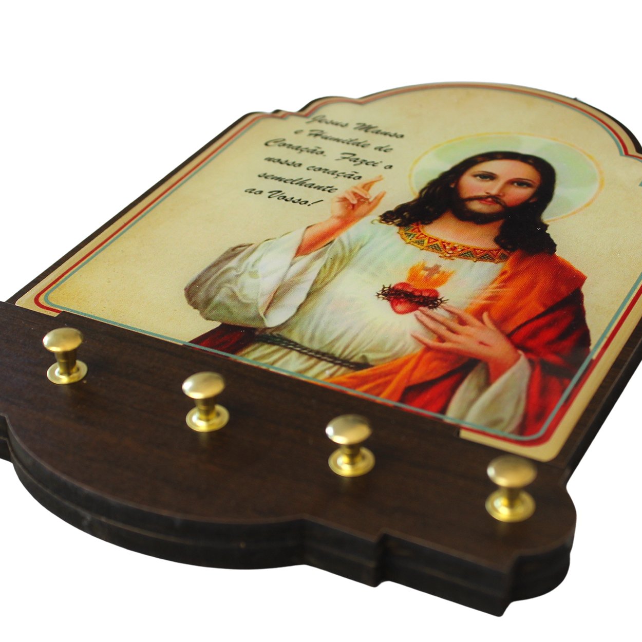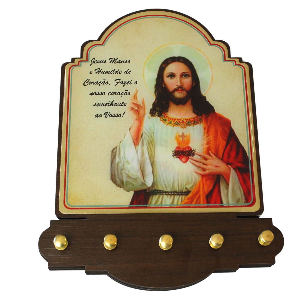 Porta chave produzido em MDF, 5 pinos para colocação de chave, foto do Sagrado Coração de Jesus, resinado.
