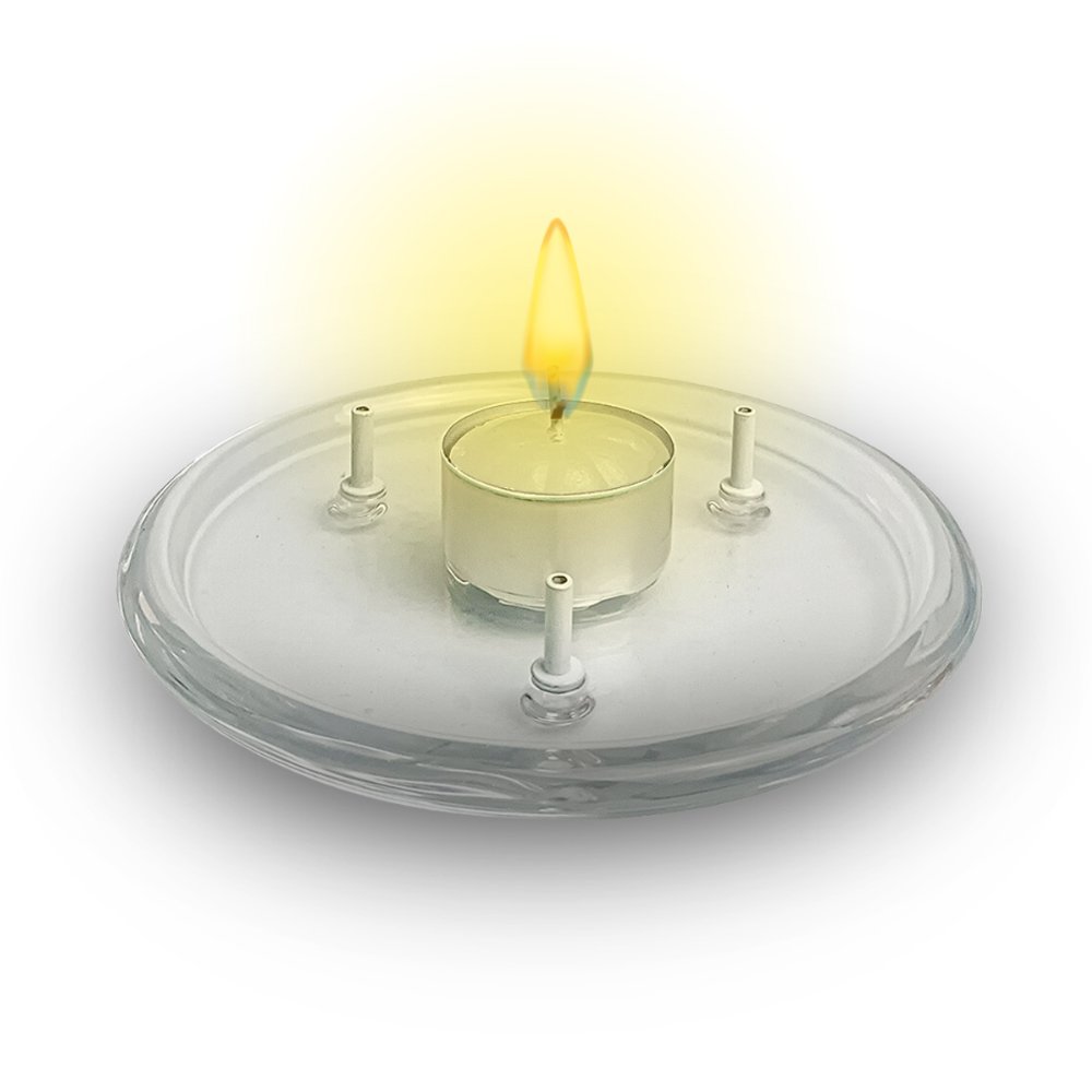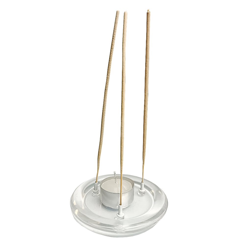 Porta Incenso Vidro Redondo Três Pinos e Vela Rechô Branca