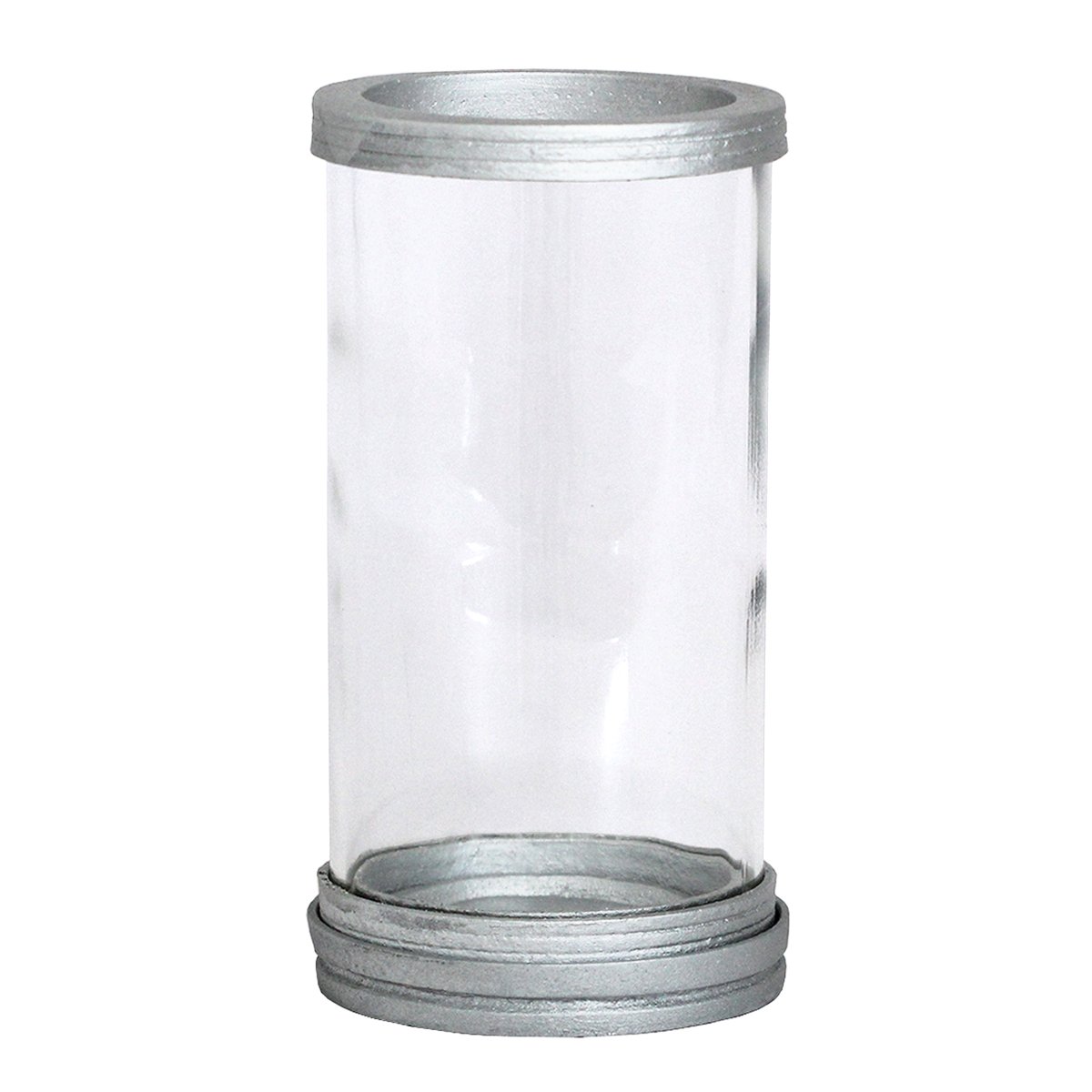 Porta vela produzido em vidro com aros de mármore com pintura em prata, oferecendo um acabamento elegante e resistente. Ideal para compor oratórios, altares e ambientes devocionais, comportando velas com até 5,5 cm de diâmetro.