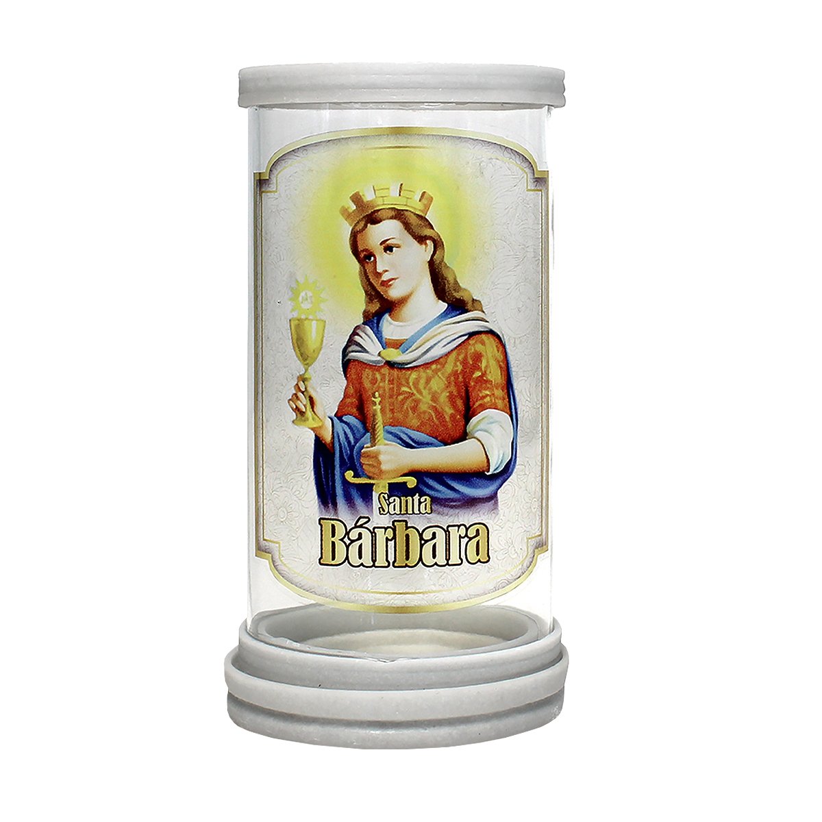 Porta vela produzido em vidro com aros de mármore, oferecendo um acabamento elegante e resistente. Ideal para compor oratórios, altares e ambientes devocionais, comportando velas com até 5,5 cm de diâmetro.