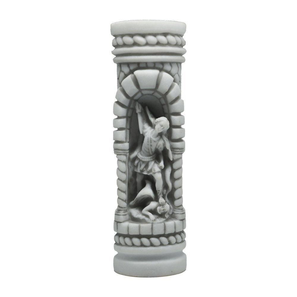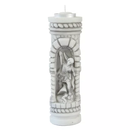 Porta Vela coluna imagem de São Miguel em marmore.Fabricado em marmore e resina importada de altissima qualidade.para velas com até 3.5 cm de diâmetro.