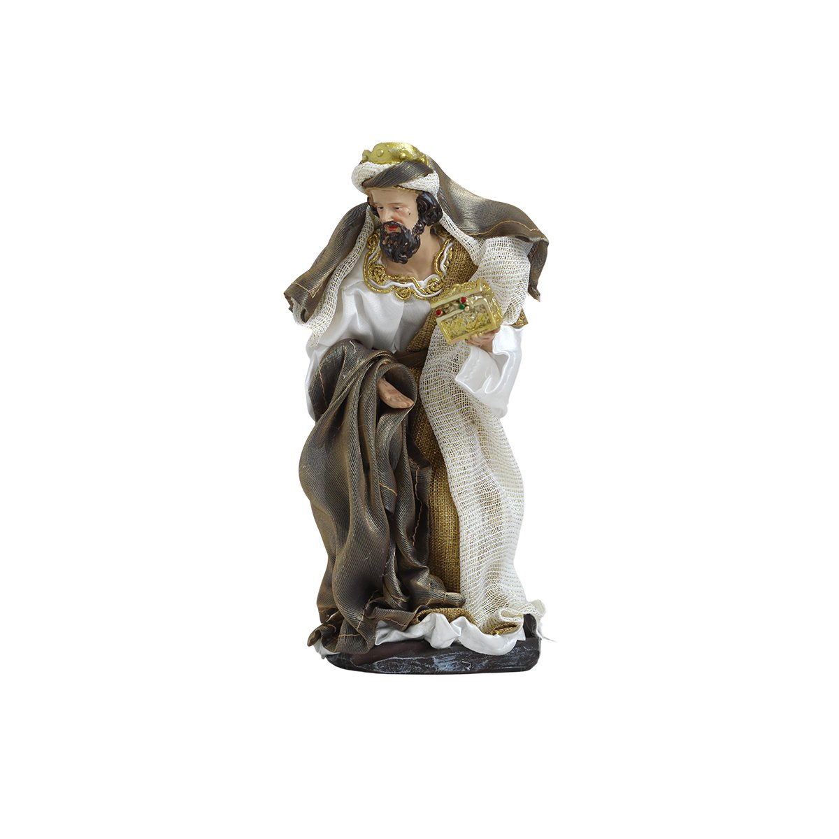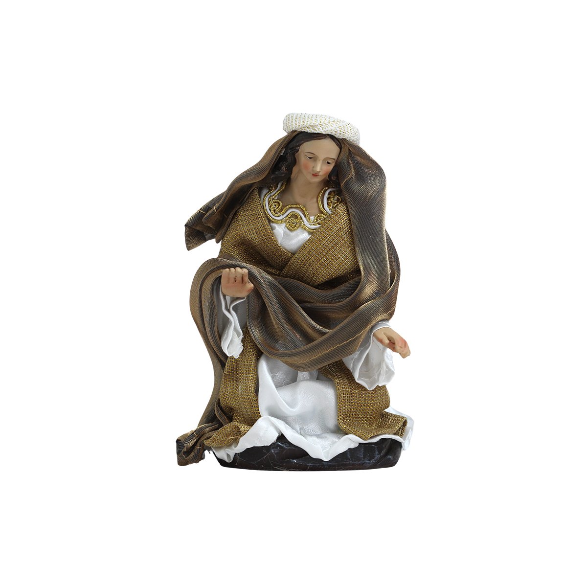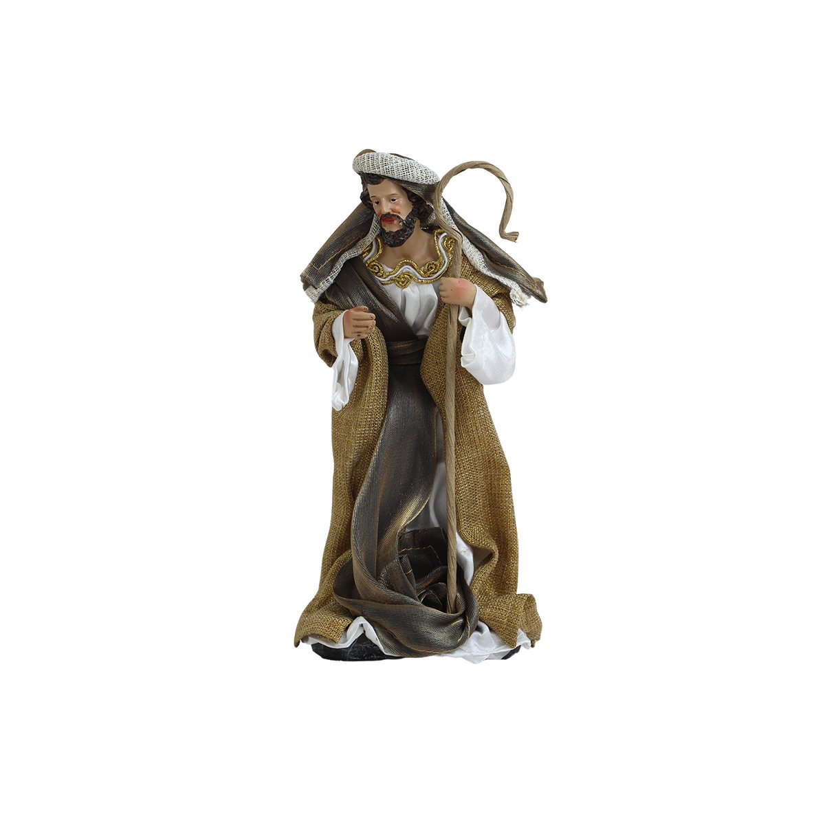 Presépio de Resina com Roupa Tecido Dourado e Marrom
