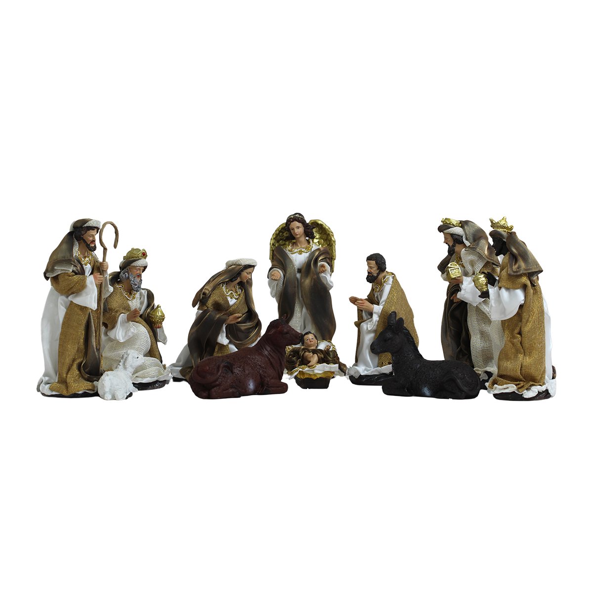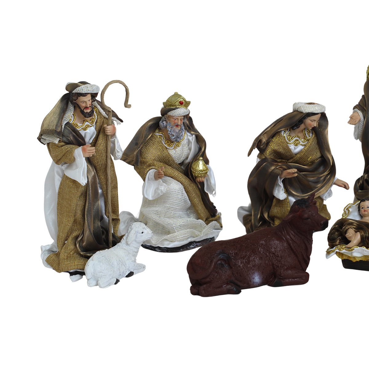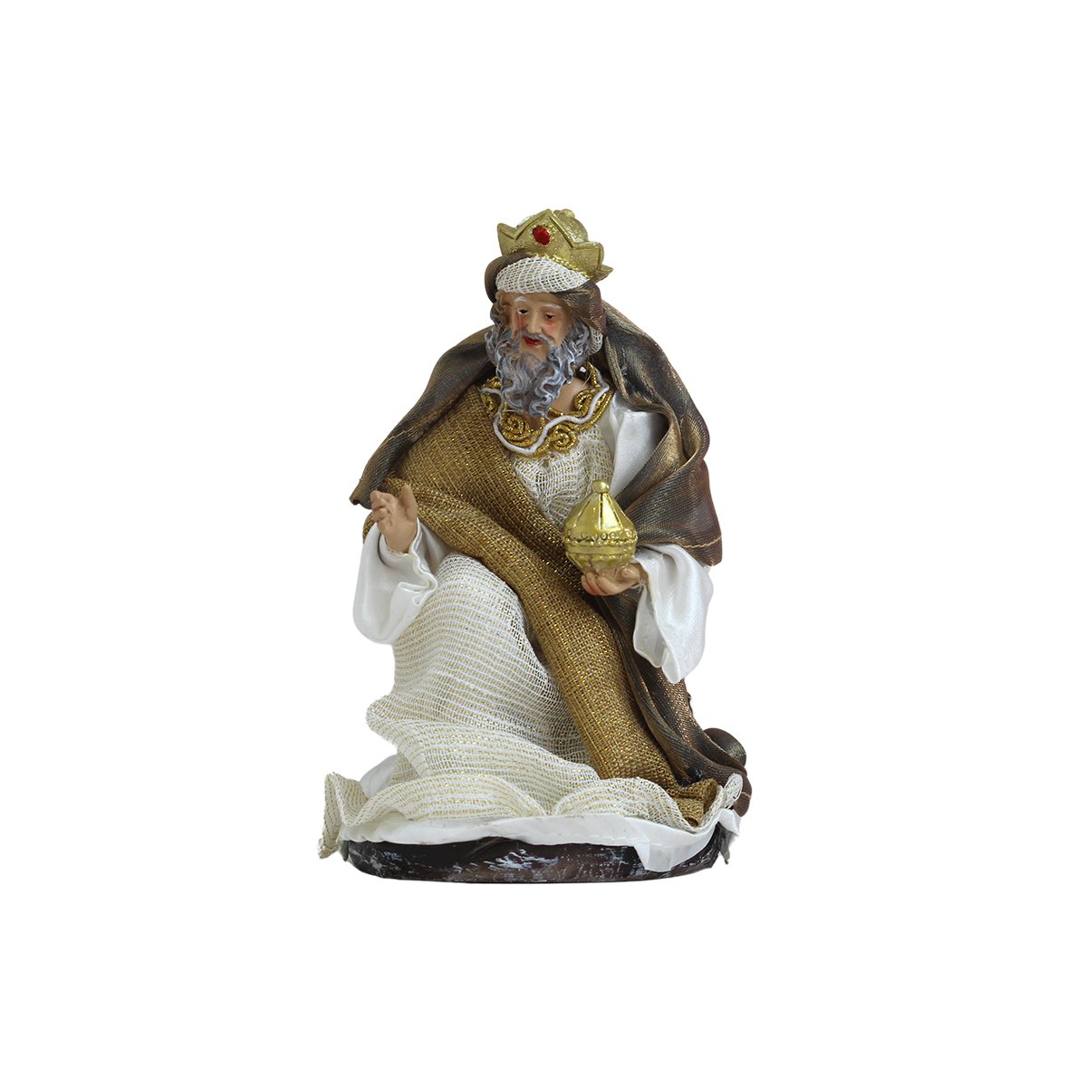 Presépio de Resina com Roupa Tecido Dourado e Marrom