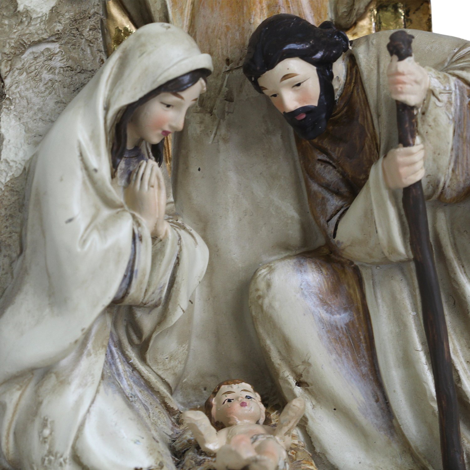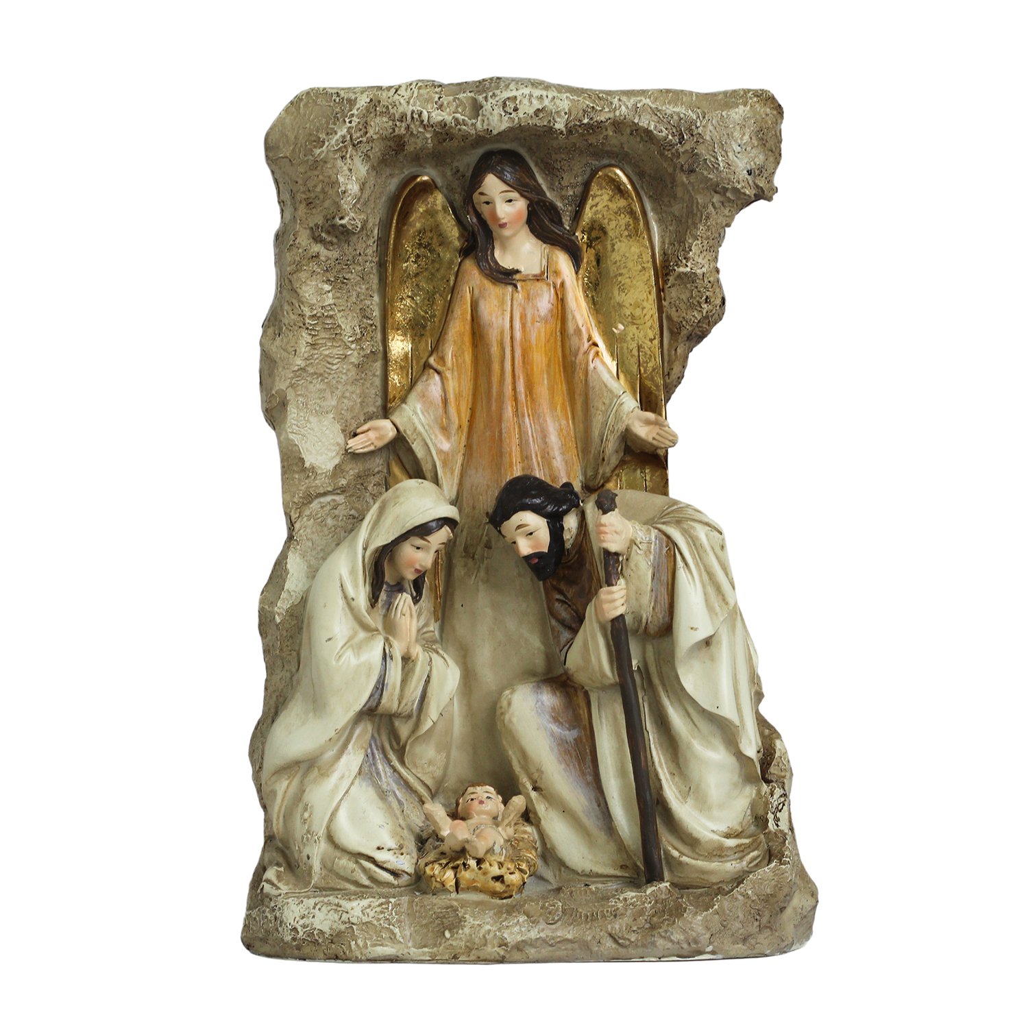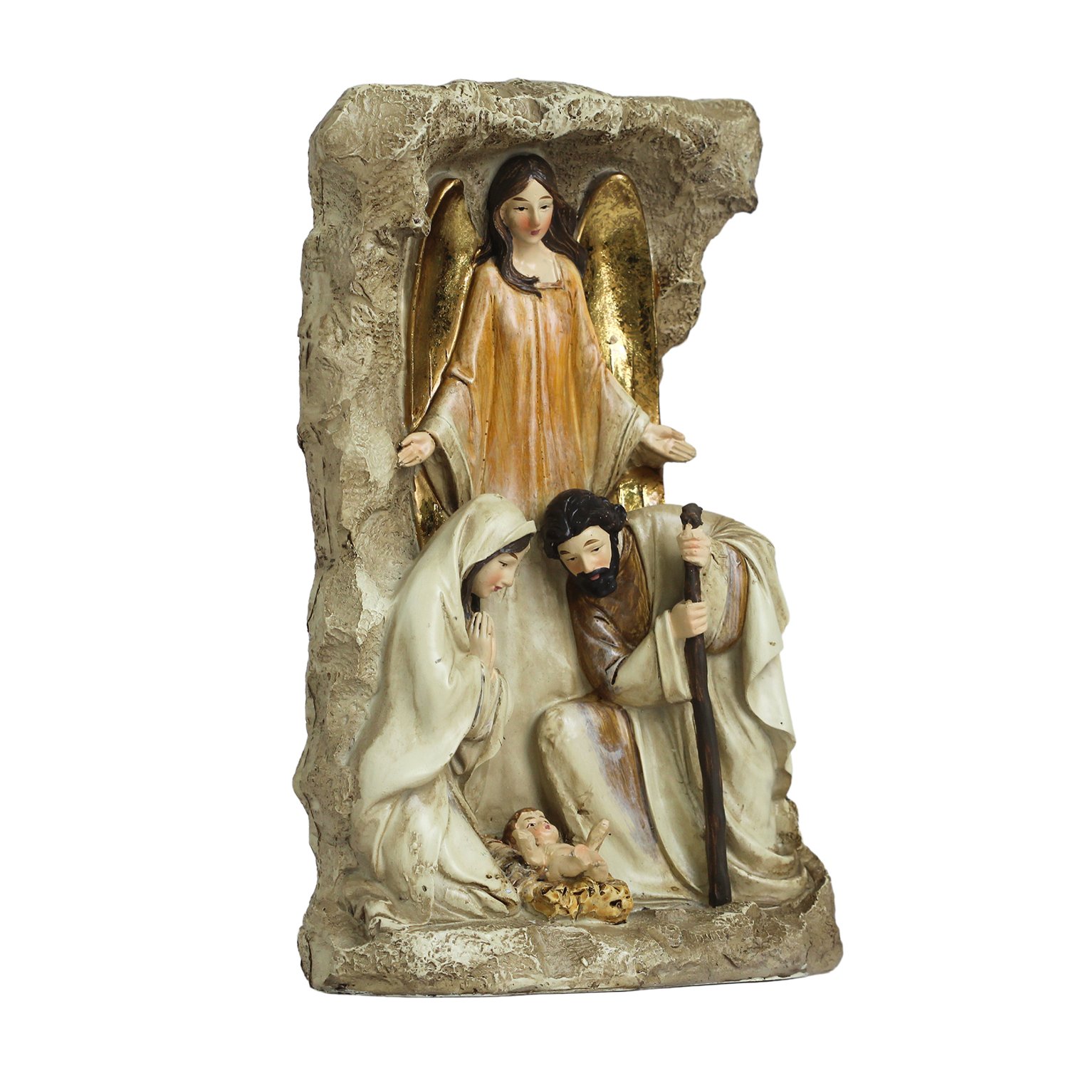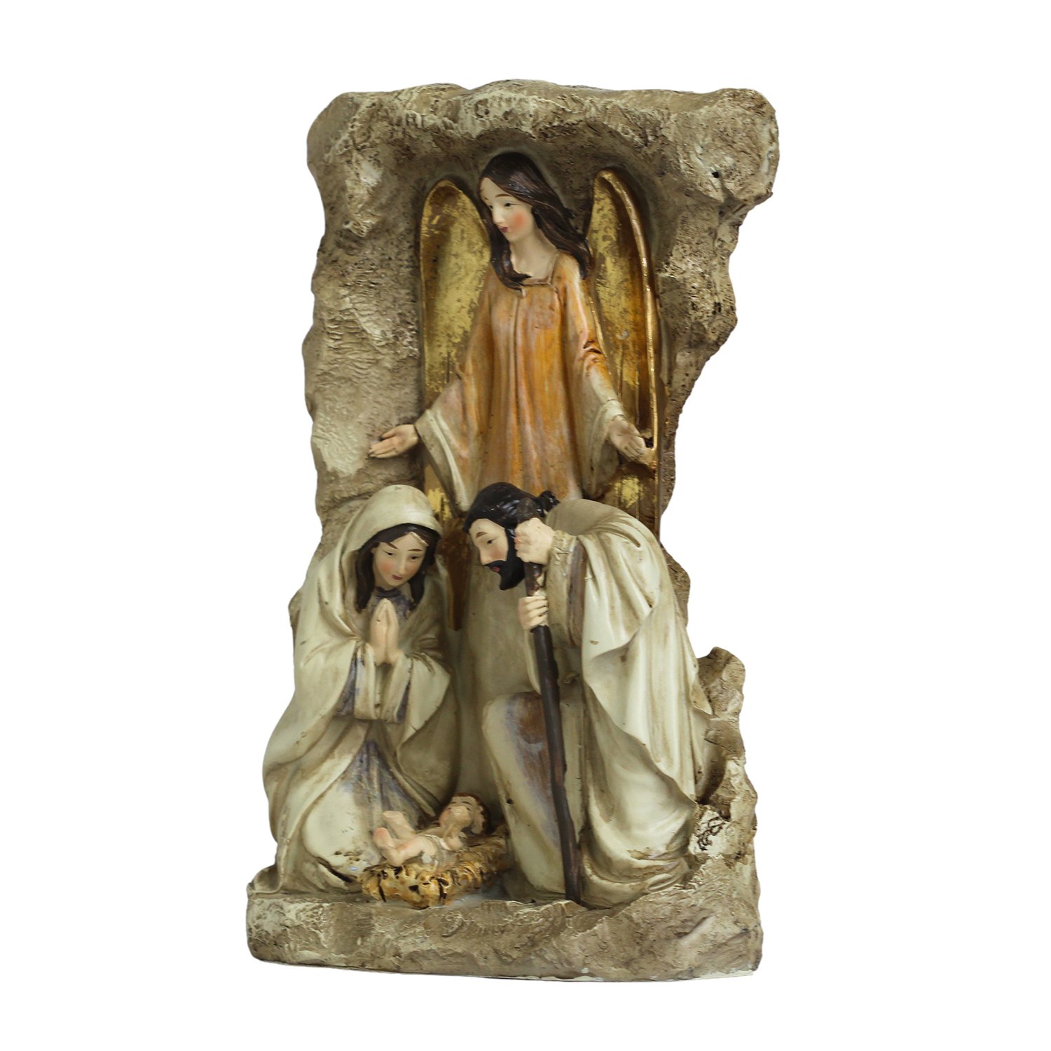 Presépio de Resina Importada Sagrada Família com Anjo em Pé