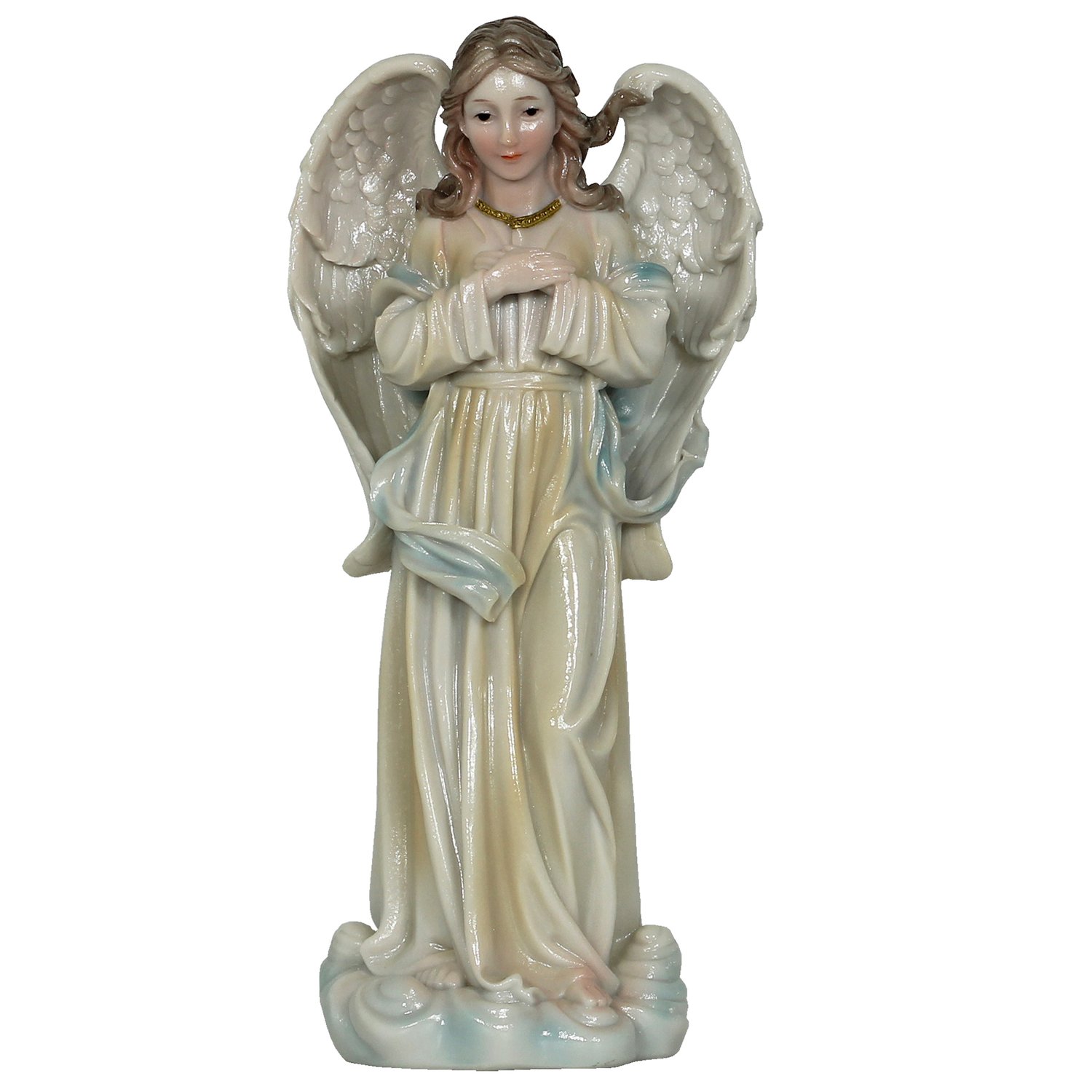 Anjo: 21 cm de altura, 9,5 cm de largura e 6,5 de comprimento.