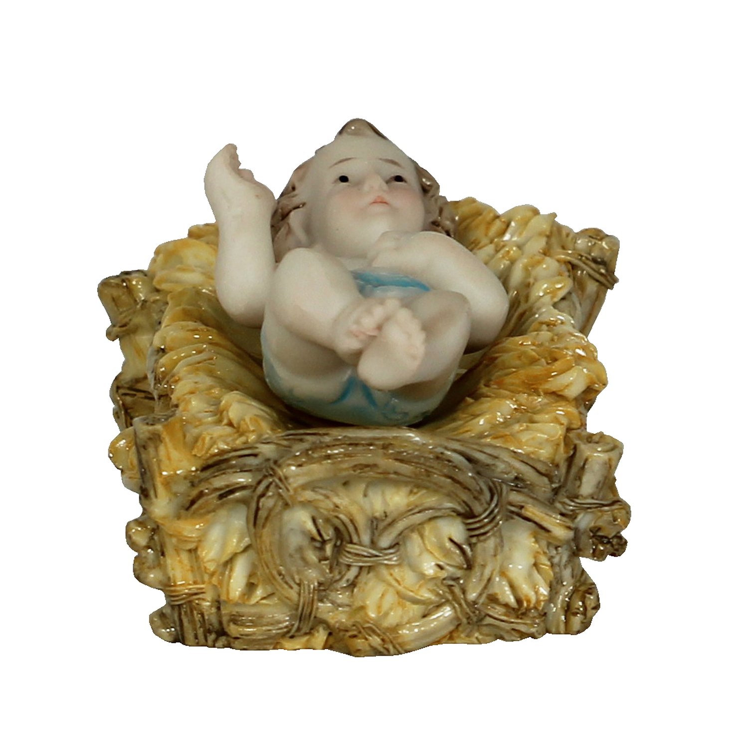 Menino Jesus: 8 cm de altura, 3 cm de largura e 3 cm de comprimento.