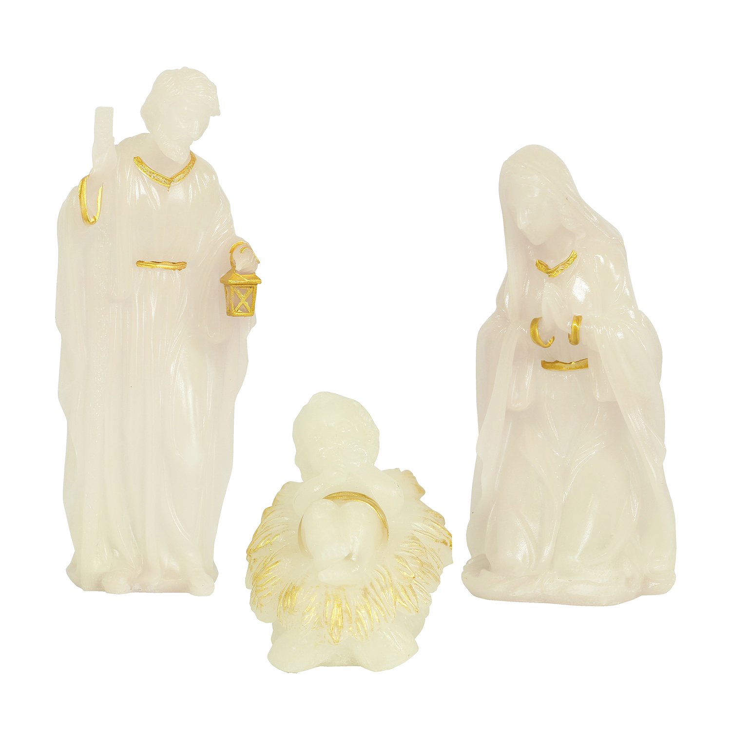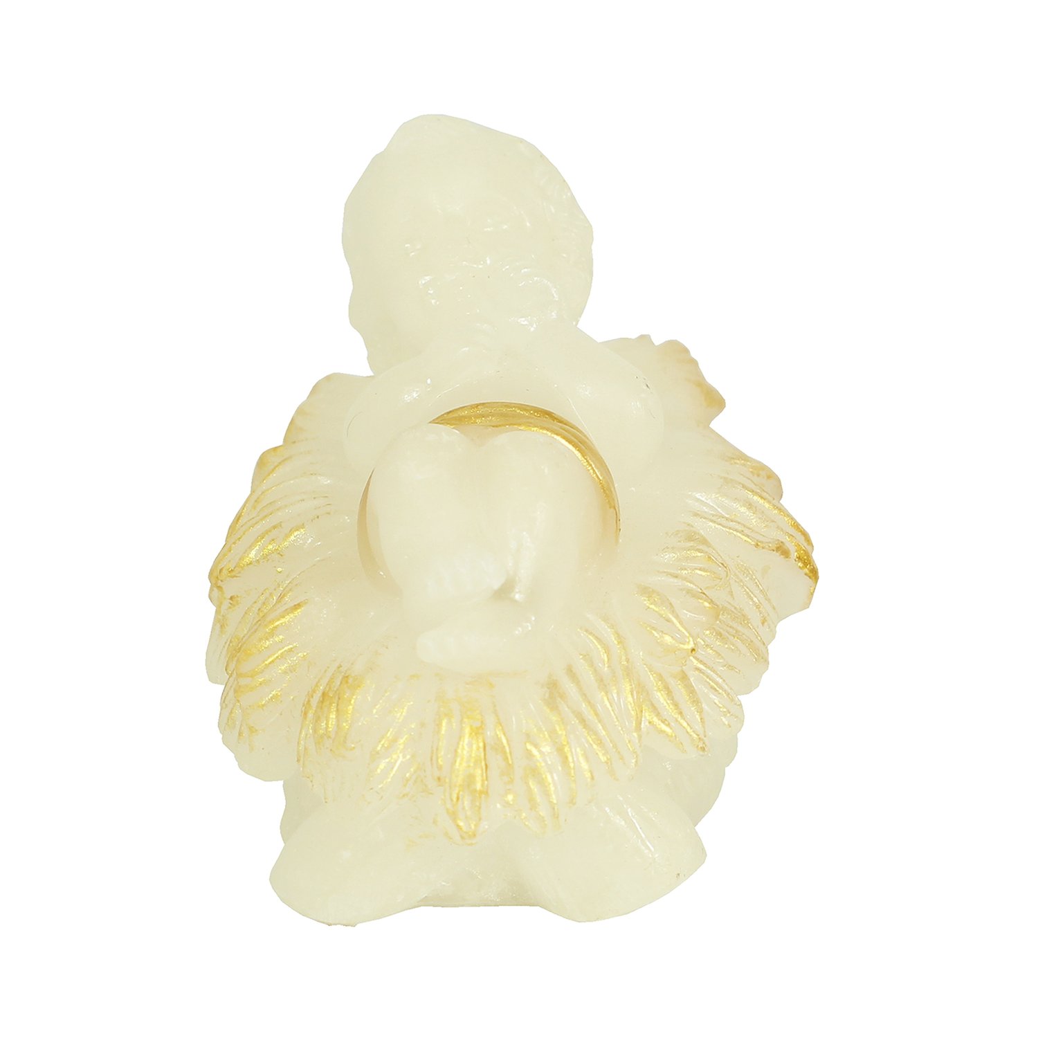 Menino Jesus: 7,5 cm de altura, 6,5 cm de largura e 10,5 cm de comprimento.