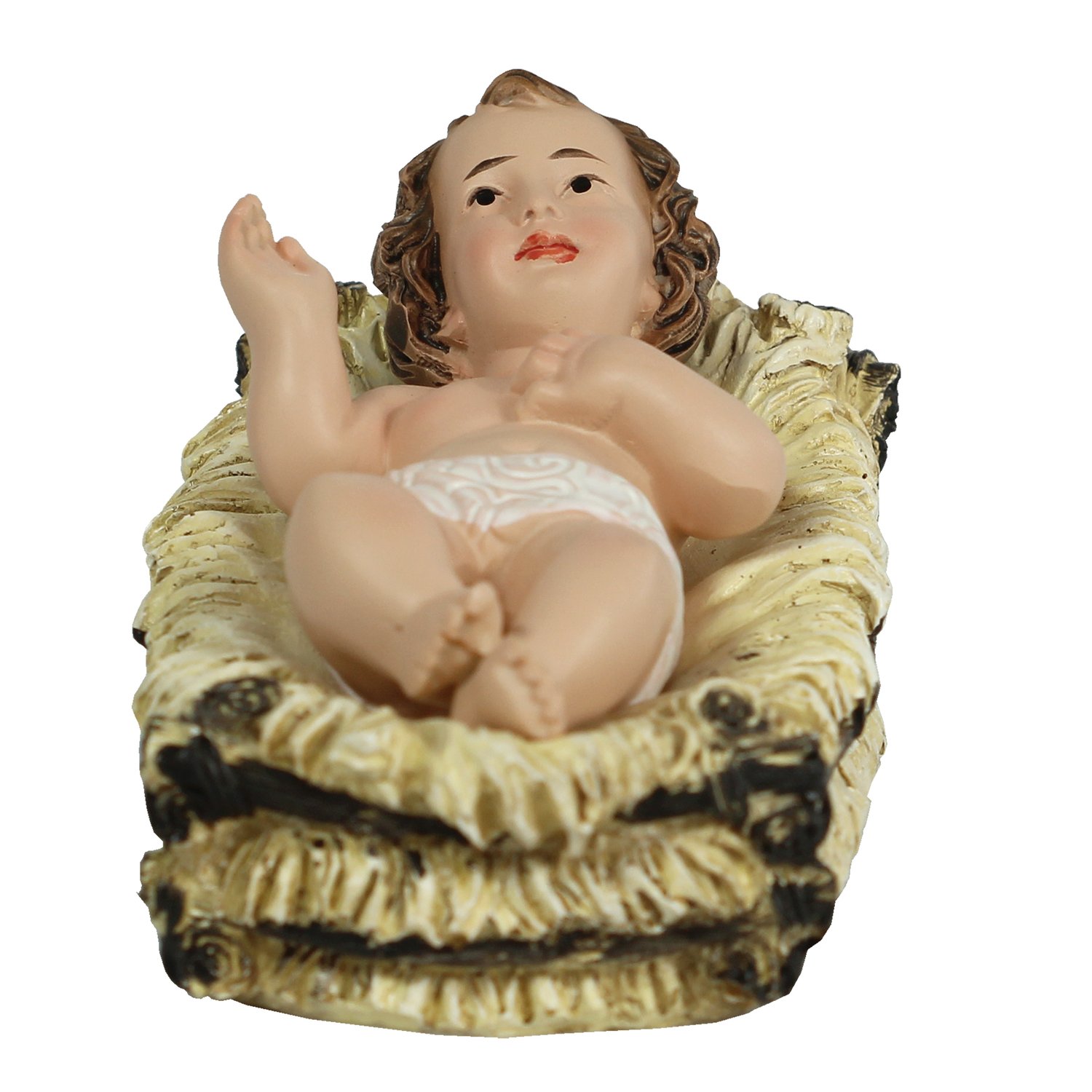 Manjedoura com menino Jesus: 7,5 cm de altura, 7,5 cm de largura e 14 cm de comprimento.