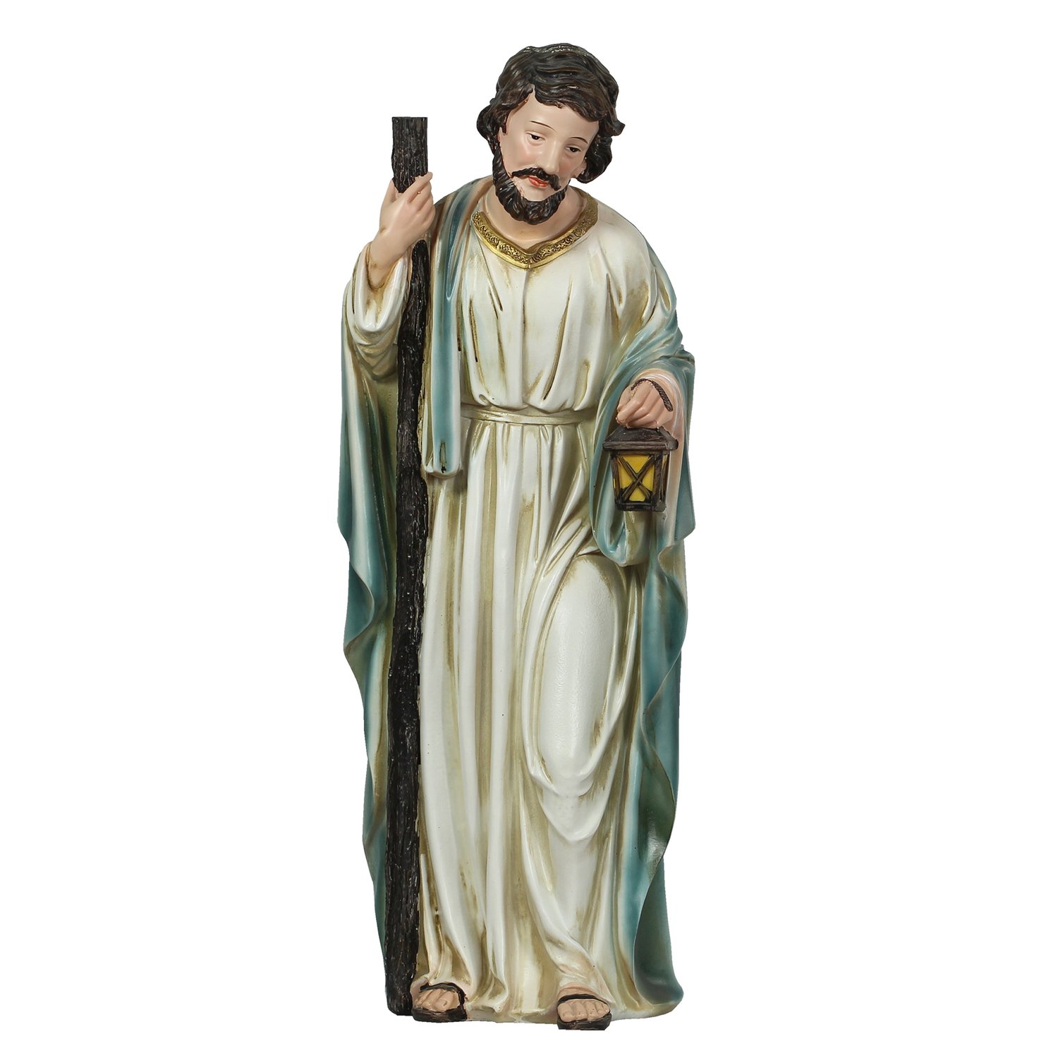 José: 45 cm de altura, 14 cm de largura e 13,5 cm de comprimento.