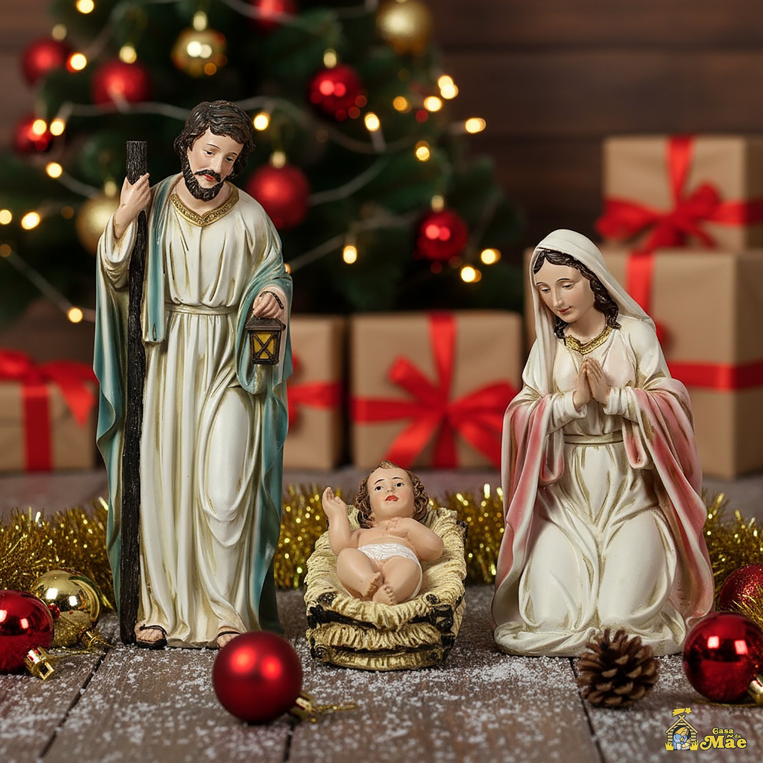 Presépio Importado de Resina Sagrada Família Mix 3 Peças