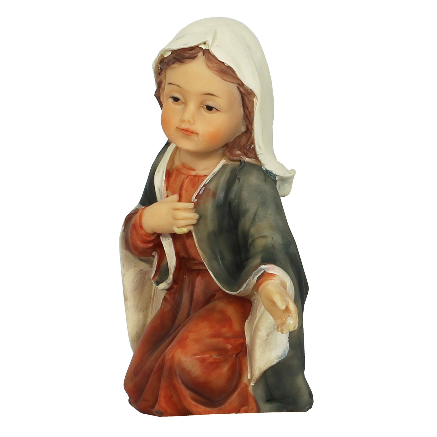 Maria: 13,5 cm de altura, 10 cm de largura e 6,5 cm de comprimento.