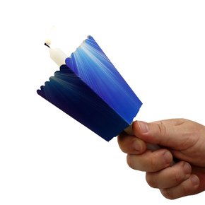 Protetor para vela de procissão na cor azul, cobertura anti-chama, papel couchê, cachepô montaado mede aproximadamente 10cm de altua. O produto vem desmontado para transporte, encaixe fácil de ser montado.