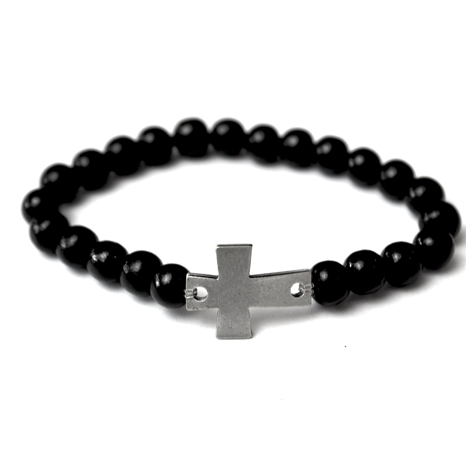 Pulseira Cruz Prata Madeira Preta - 8 mm