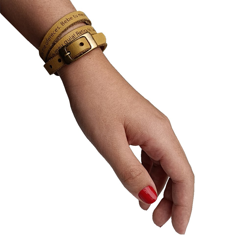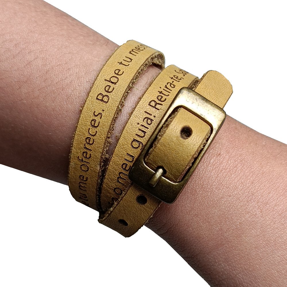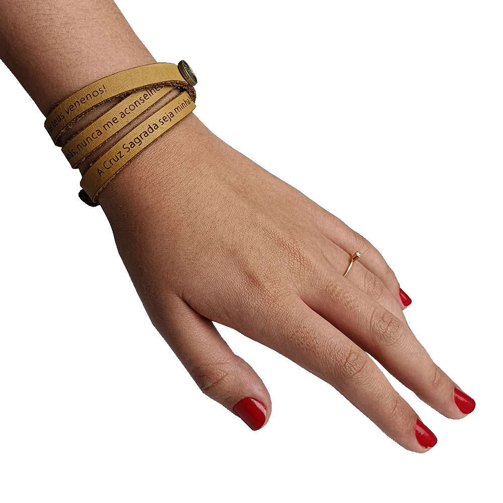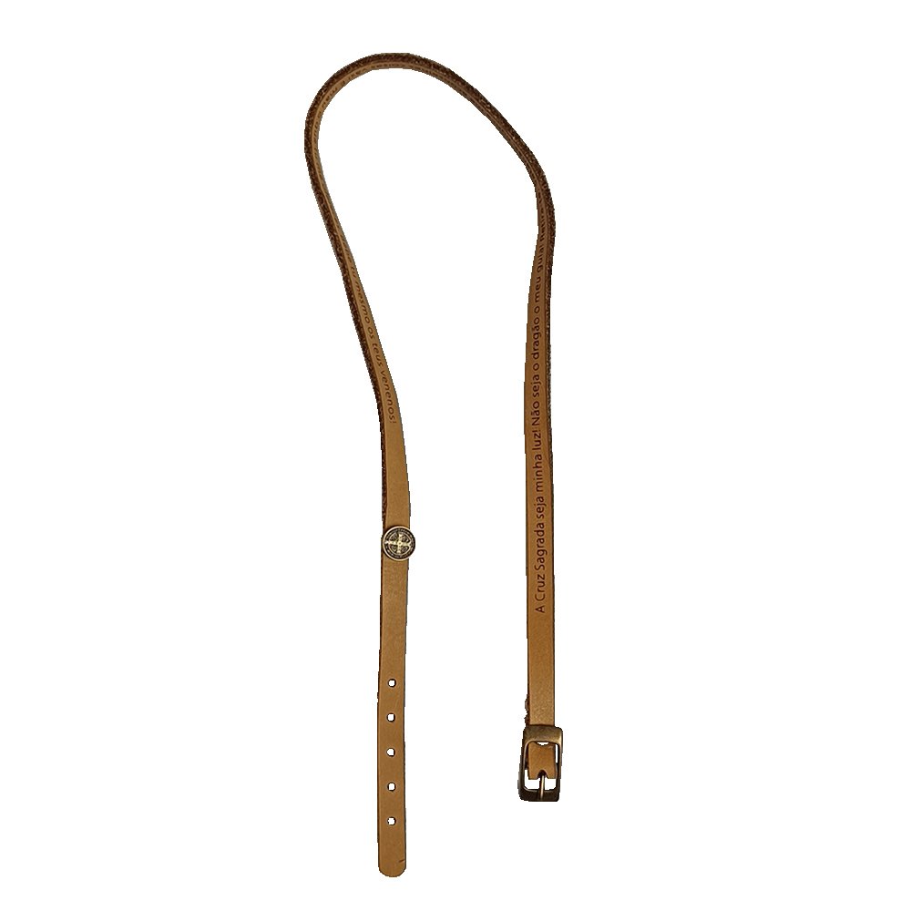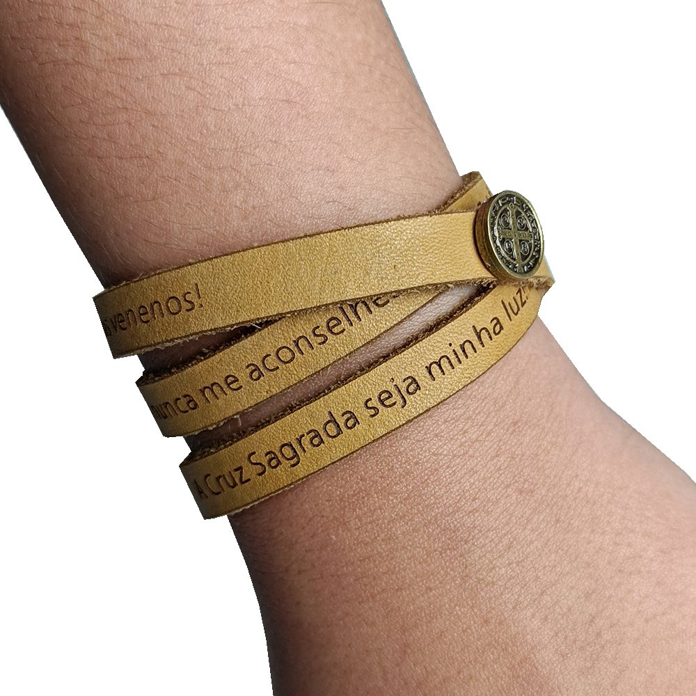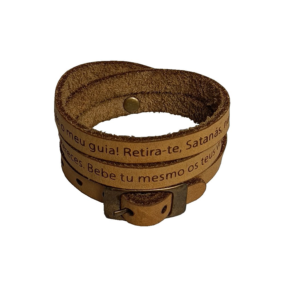 Pulseira de Couro Caramelo Oração de São Bento - Unissex