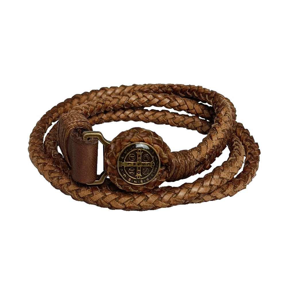 Pulseira de Couro Marrom 2 Voltas São Bento - Unissex