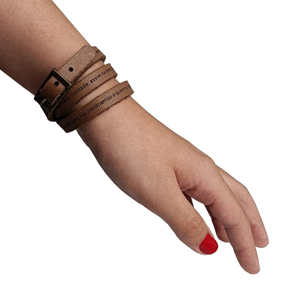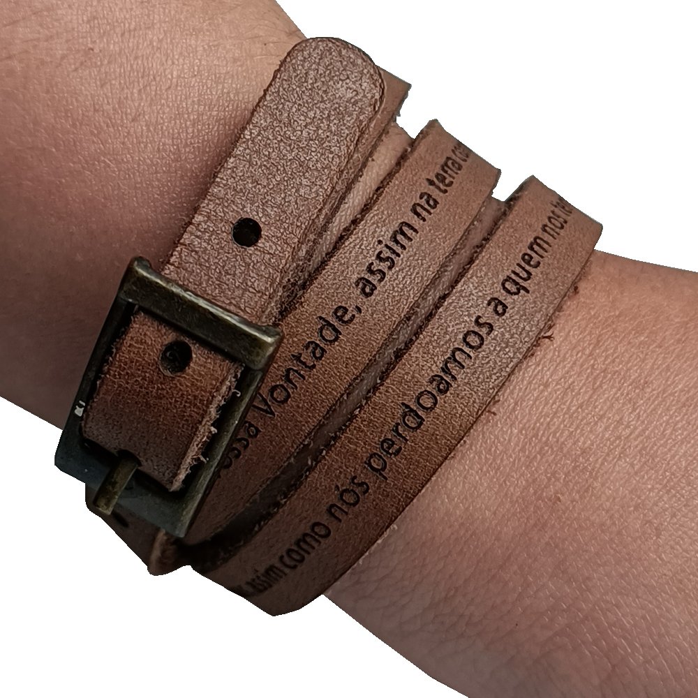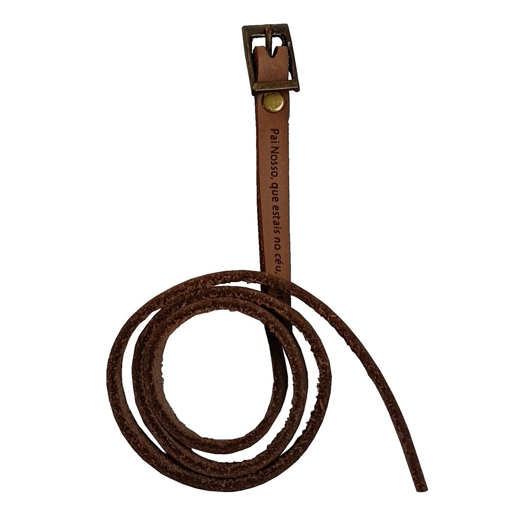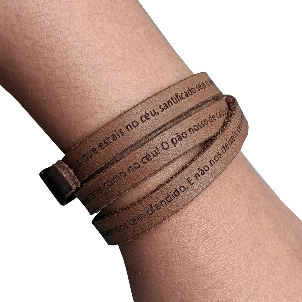 Pulseira de Couro Marrom Oração de Pai Nosso - Unissex