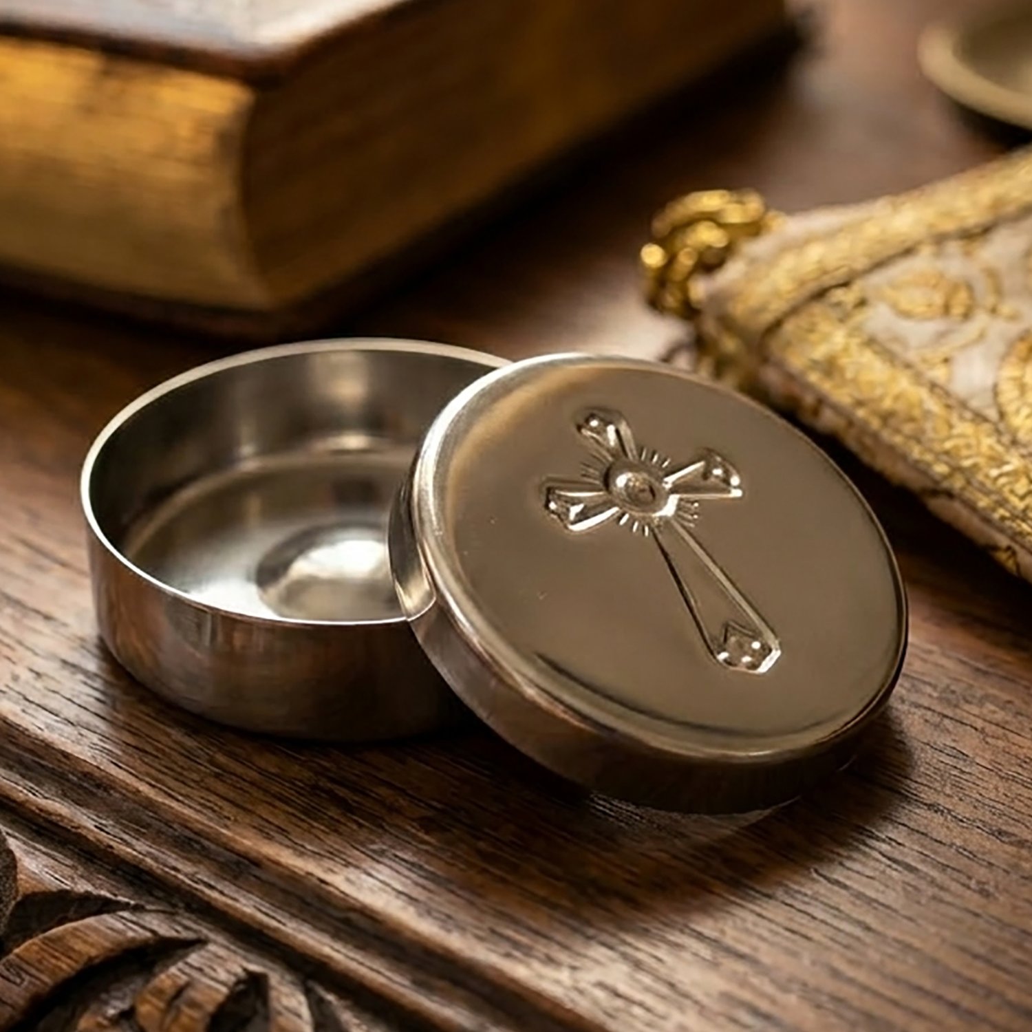 Teca: Pequeno recipiente onde se leva a comunhão para pessoas impossibilitadas de ir a missa.