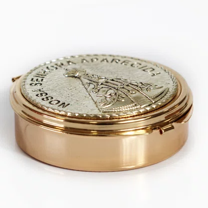 Teca: Pequeno recipiente onde se leva a comunhão para pessoas impossibilitadas de ir a missa.