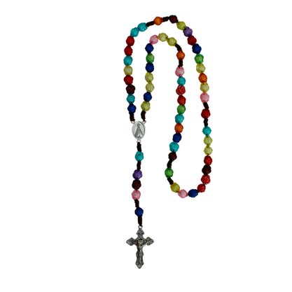 Terço de Nossa Senhora Aparecida Acrílica Rosas Color - 10 mm