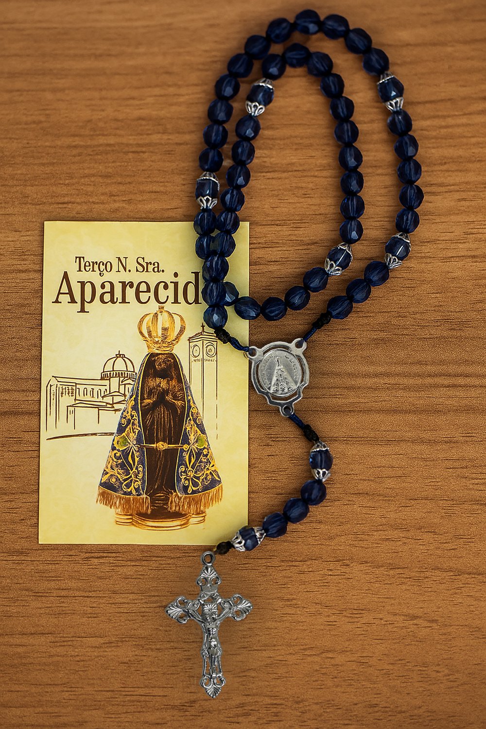 Terço de Nossa Senhora Aparecida Contas Azul 10 mm