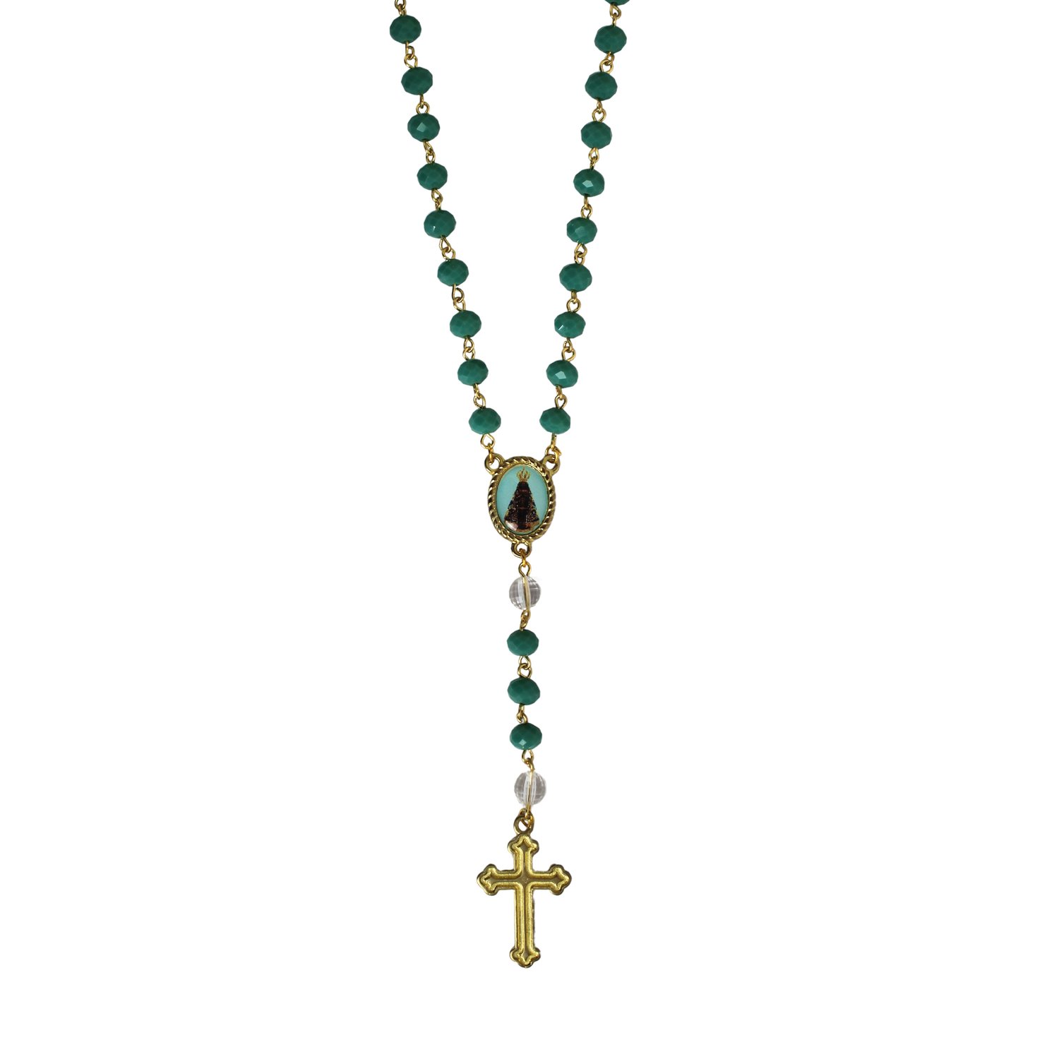 Terço de Nossa Senhora de Aparecida Verde Água e Dourado - 8 mm