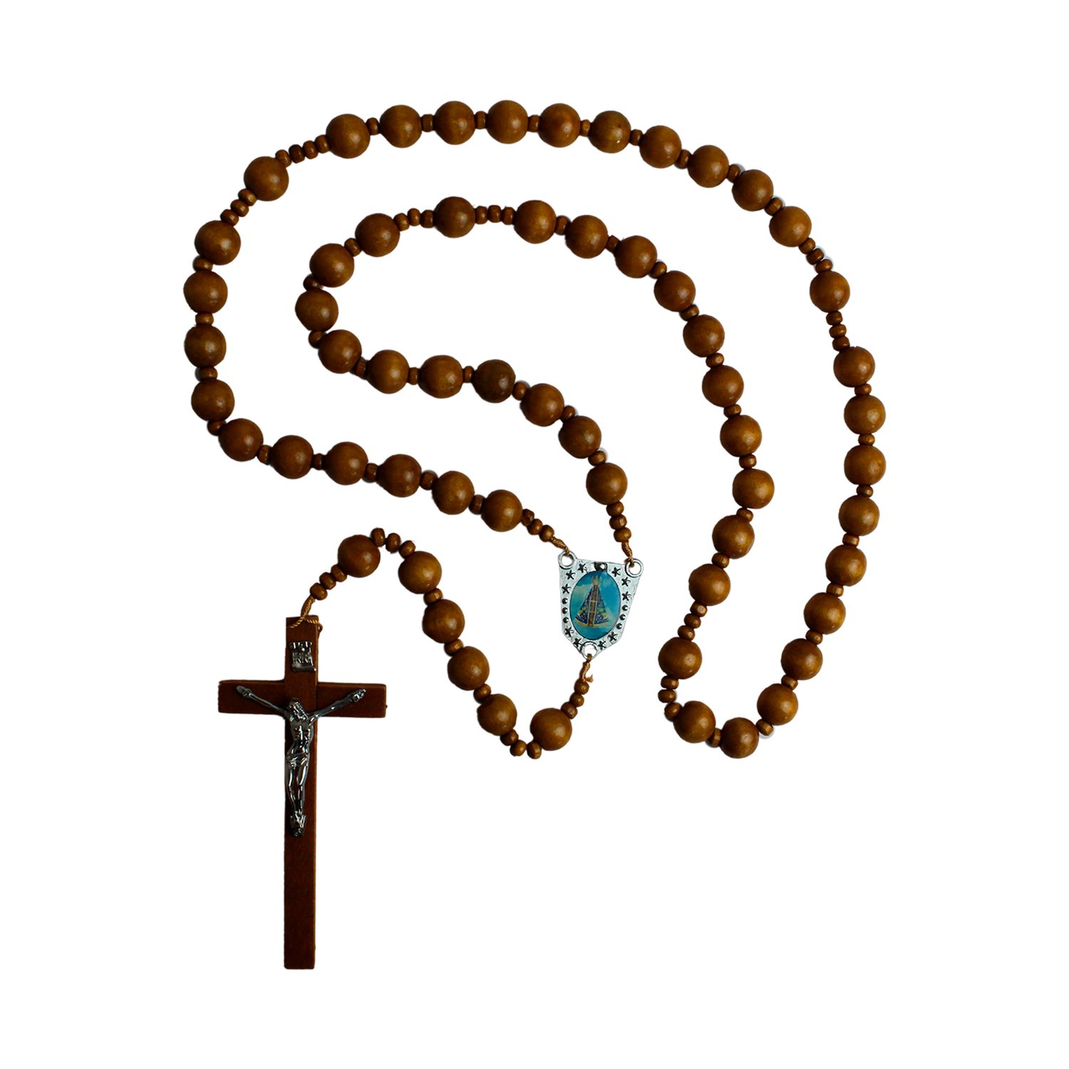 Terço de Parede Nossa Senhora Aparecida Madeira Clara - 13 mm