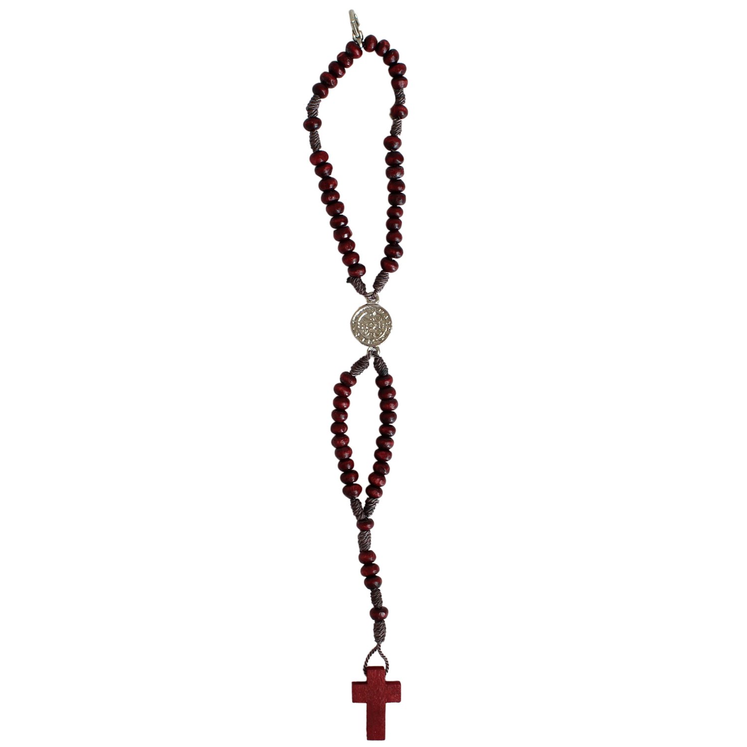 Terço de Pulso São Bento Medalha Madeira Vermelha - 5 mm