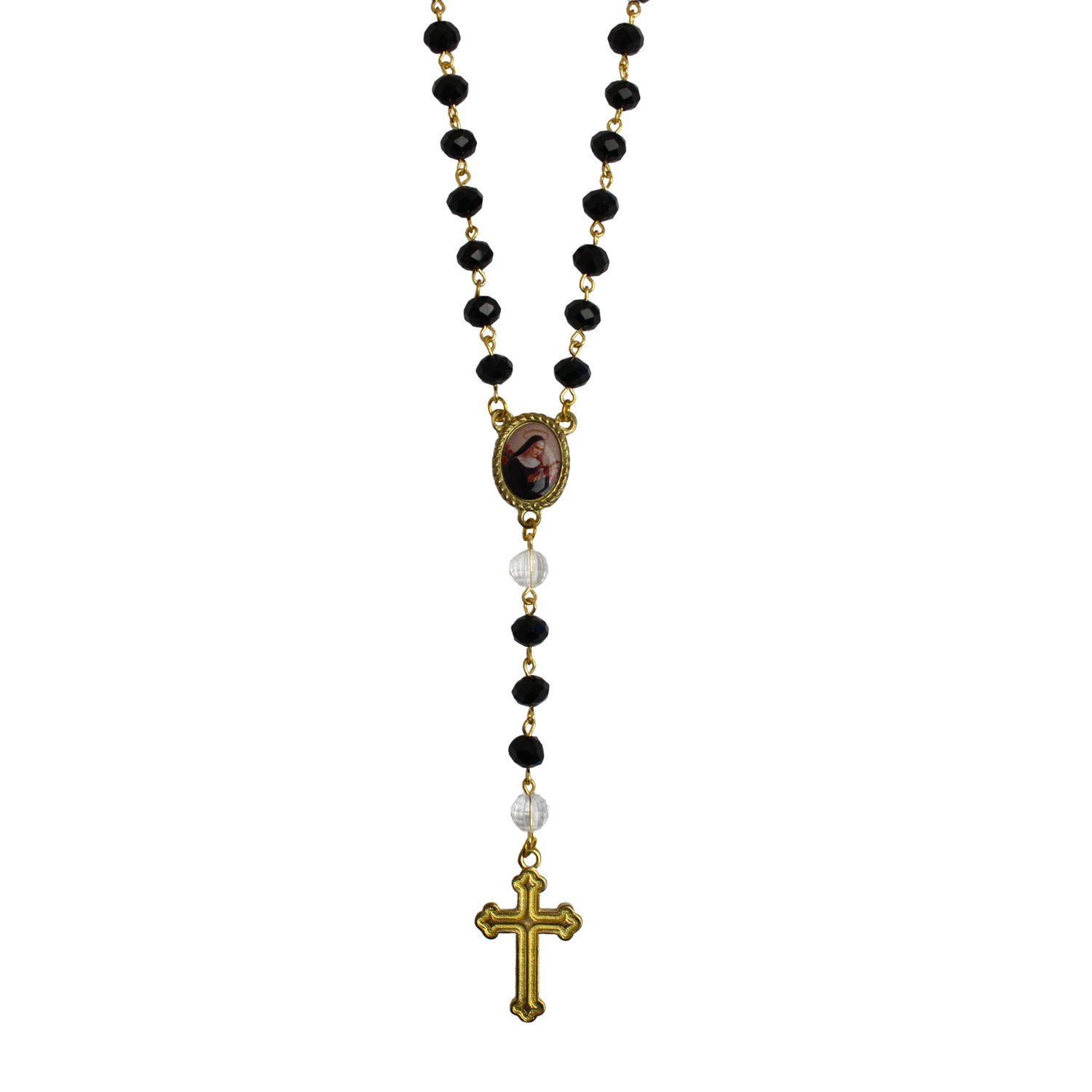 Terço de Santa Rita Semi Cristal Preto - 7 mm