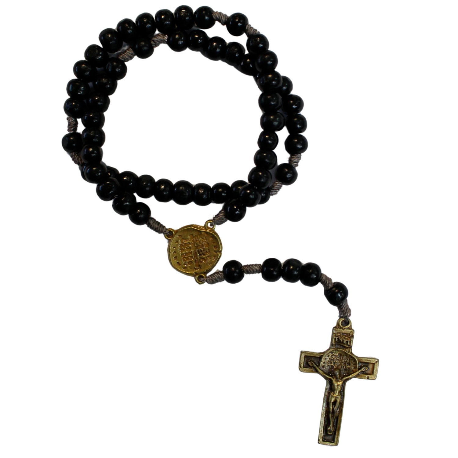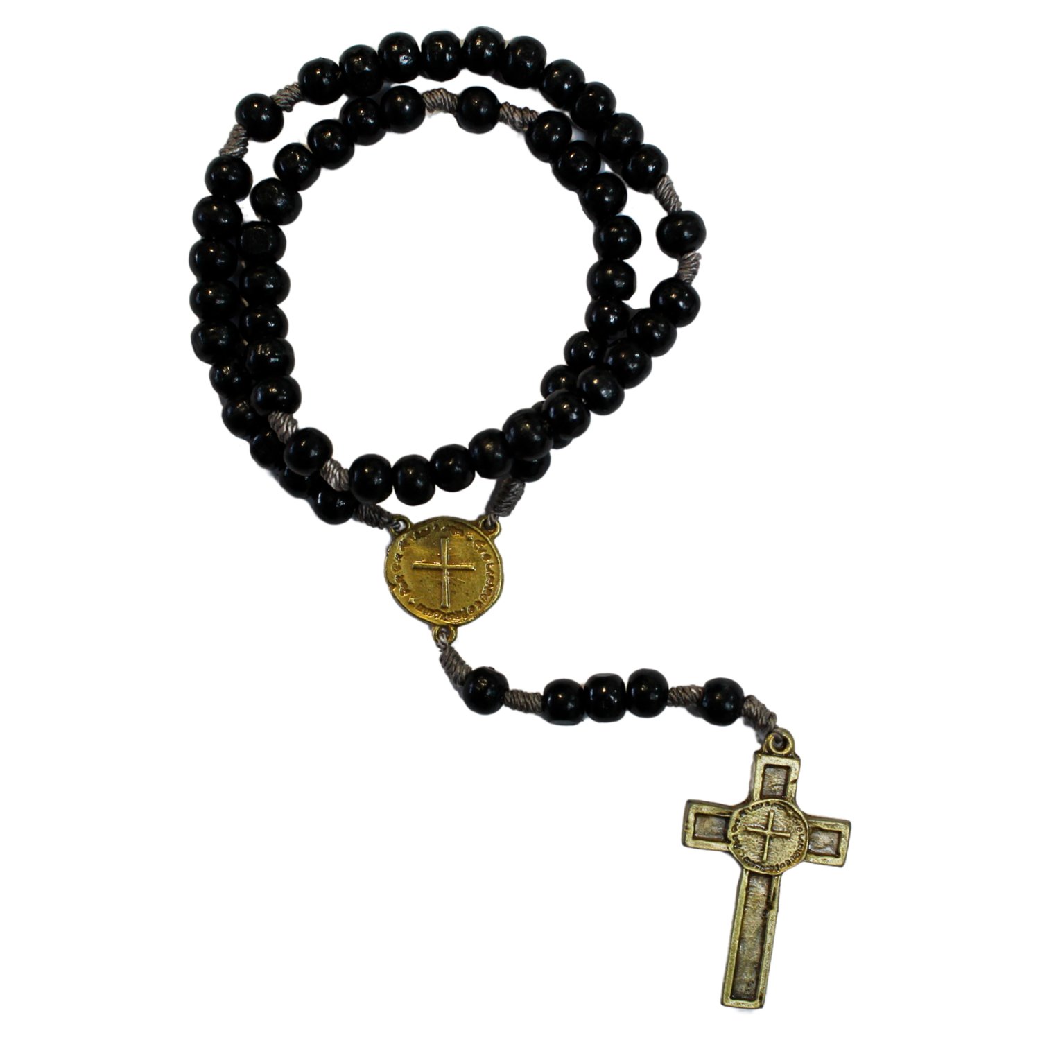 Terço Madeira Preta 2 Cruzes Trevo e Cruz Ouro Velho