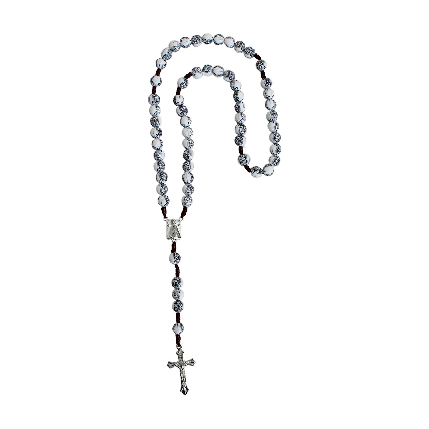 Terço Nossa Senhora Aparecida Conta Branca e Imagem Marrom