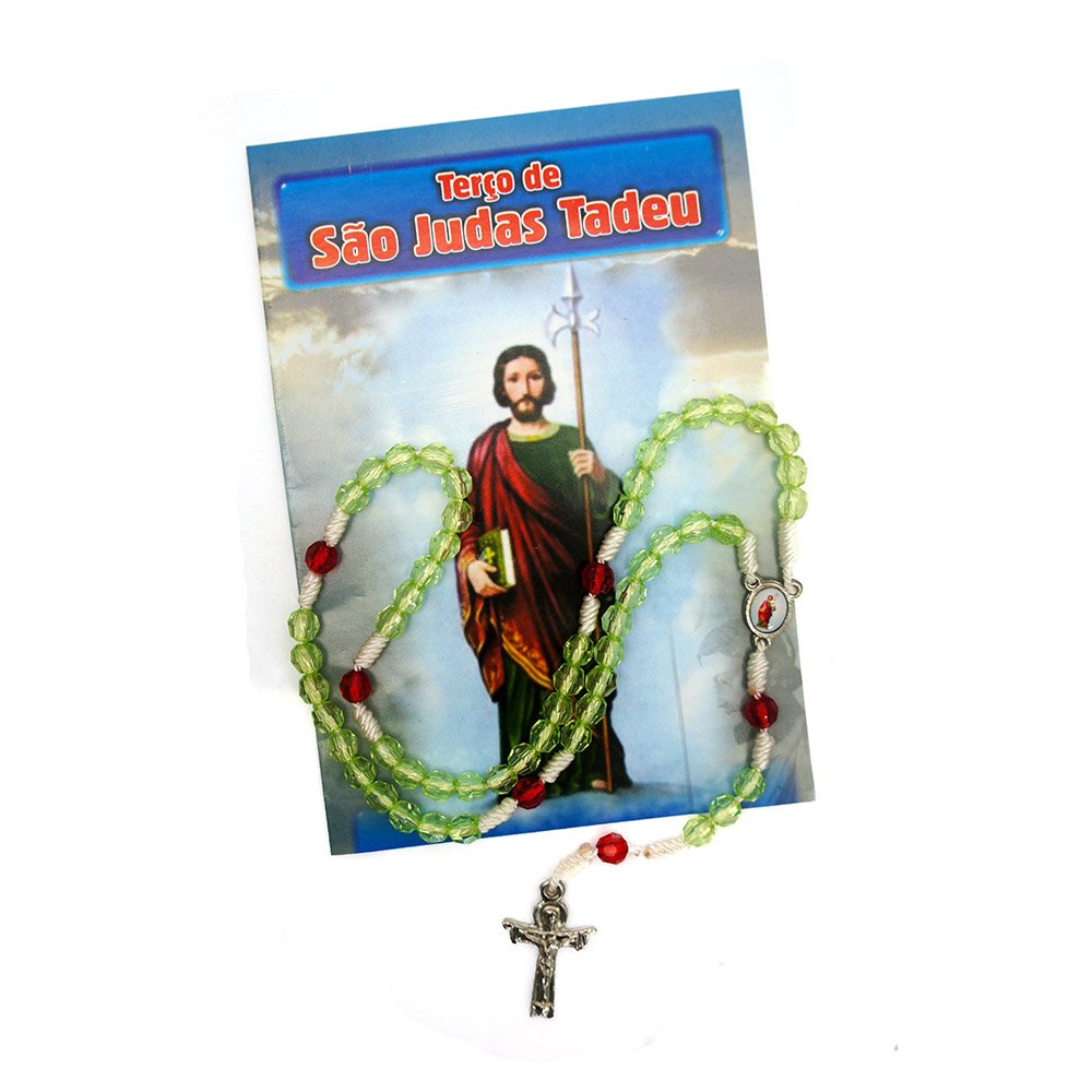 Terço de São Judas acompanha folheto de oração.