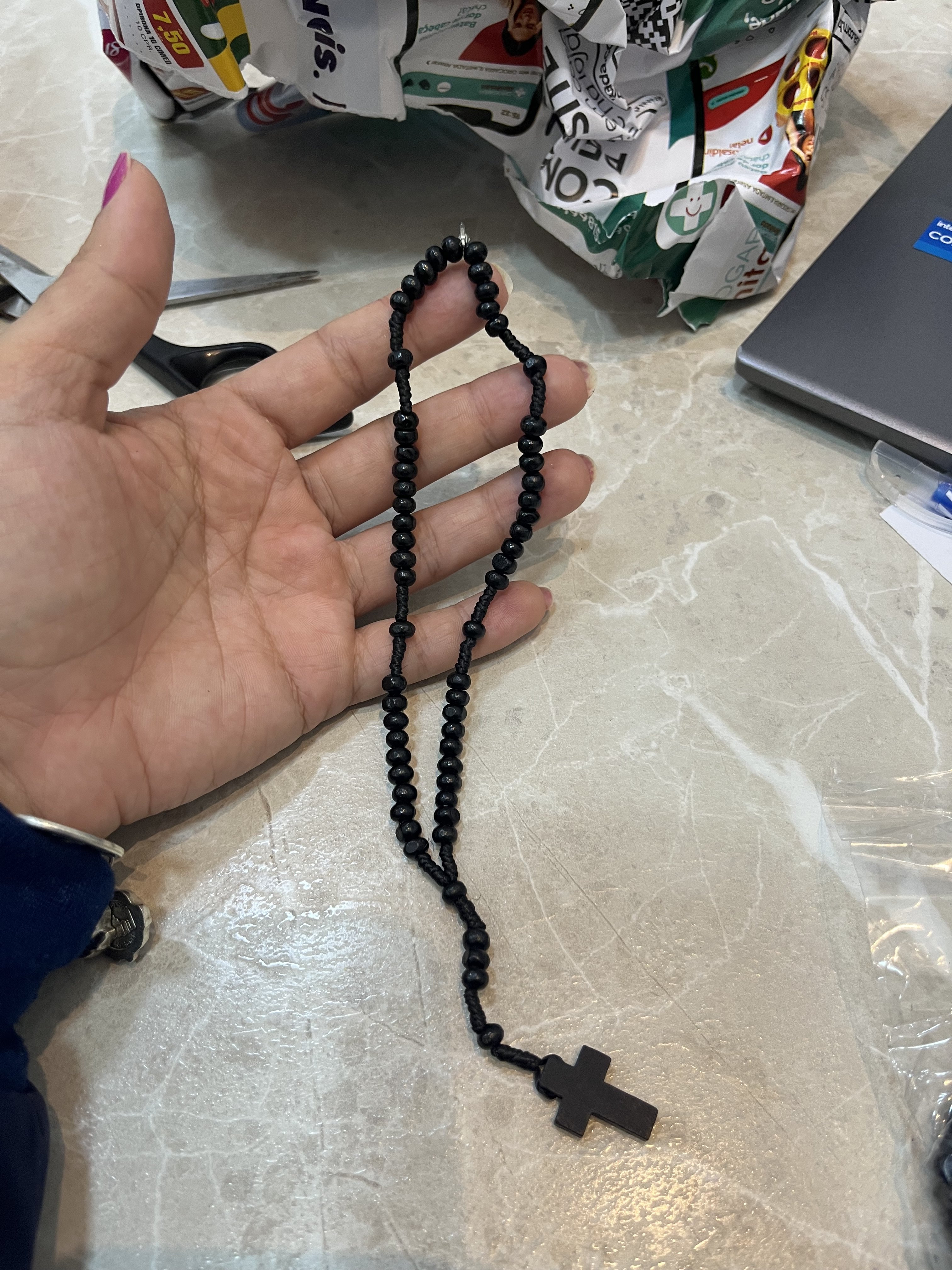 Belíssimo terço para pulso ou braço com medalha de São Benro e contas coloridas.