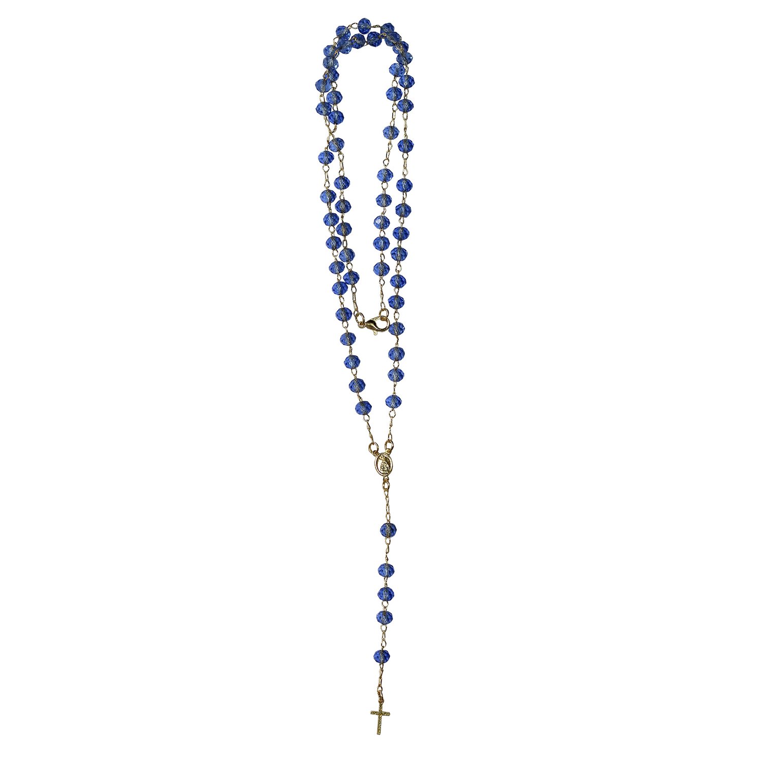 Terço Pescoço Semi Cristal Azul Claro de Nossa Senhora Aparecida