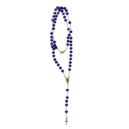 Terço Pescoço Semi Cristal Azul Escuro de Nossa Senhora Aparecida Dourado