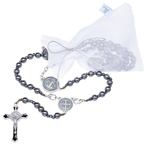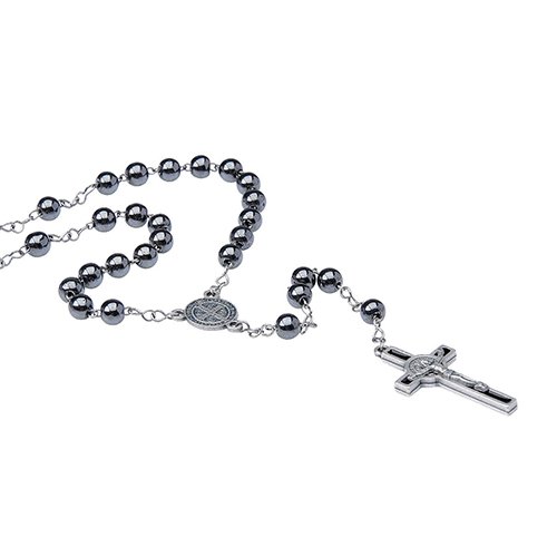 Com materiais de qualidade, o Terço da União representa a fé, proteção e devoção. Produto confeccionado com contas de hematita 8 mm, cada mistério pode ser separado virando 4 pulseiras e 1 dezena.