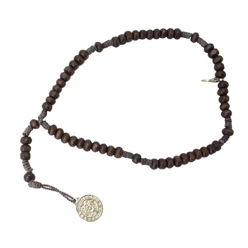 Terço de pulso medalha São Bento madeira imbuia