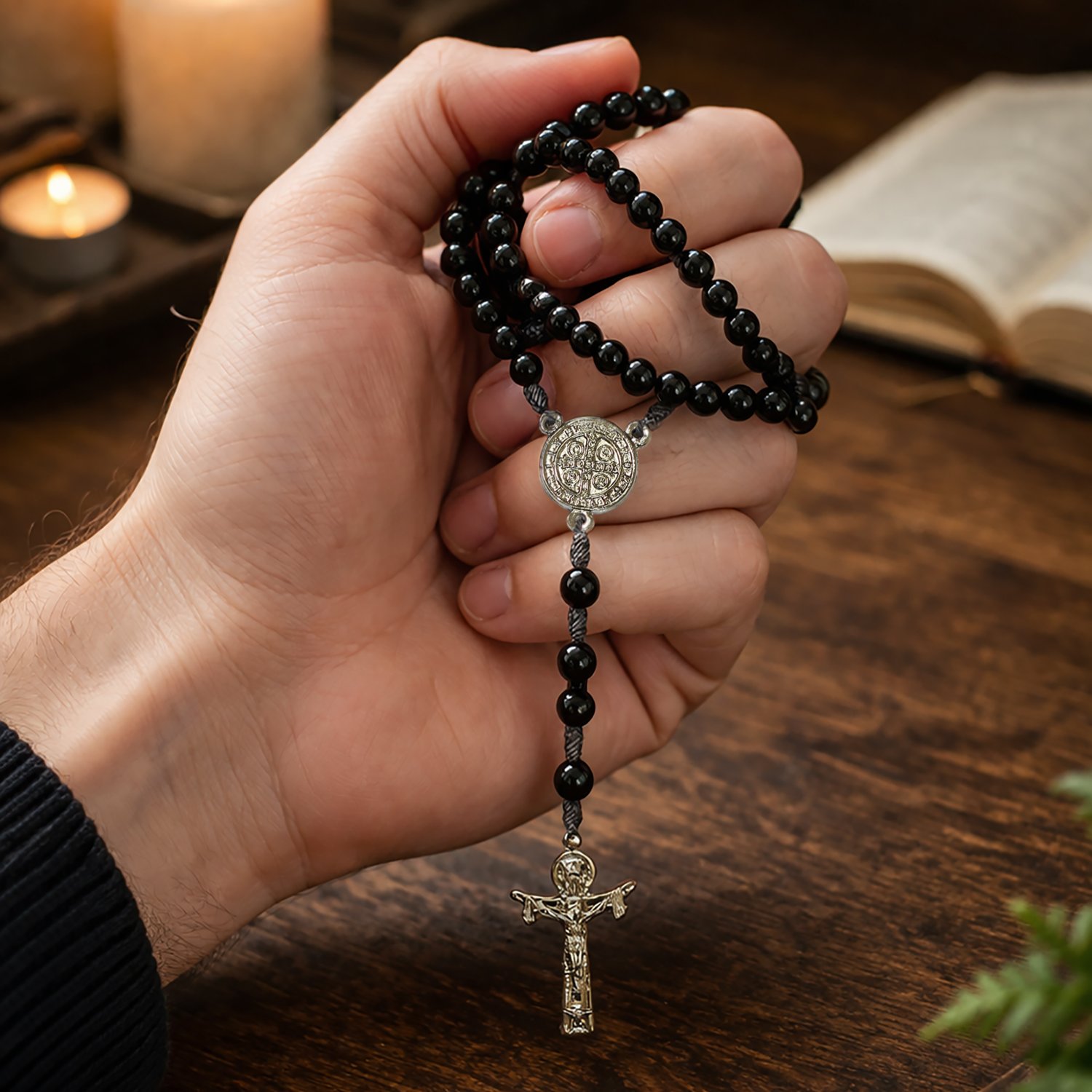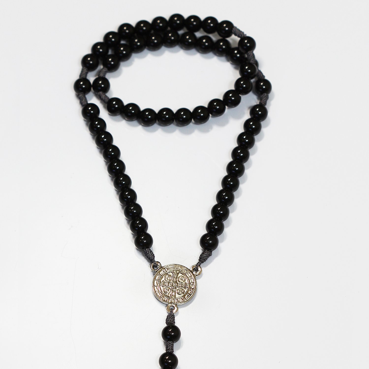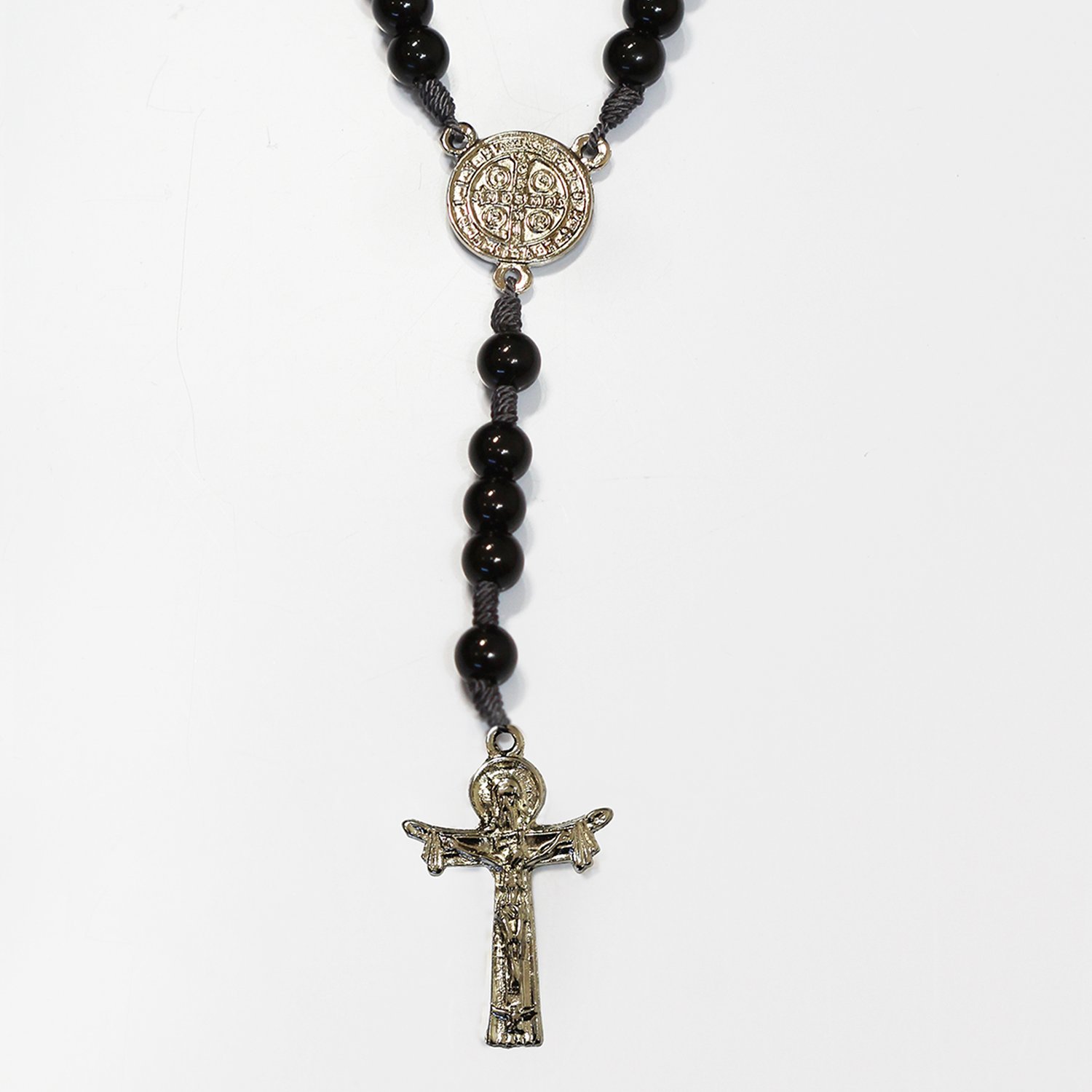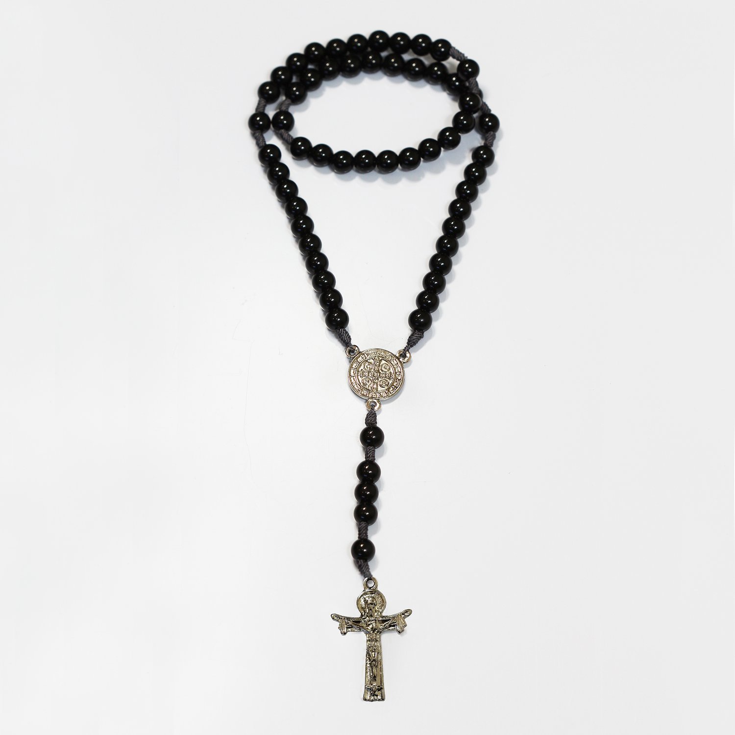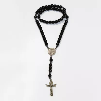 Terço São Bento Plástico Preto Cruz SST Prata 8 mm