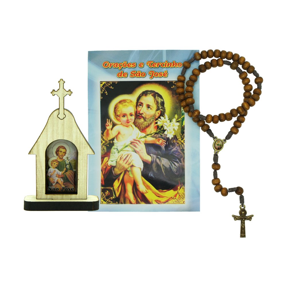 Terço de São José com Folheto de Oração e Capela em Madeira Clara.