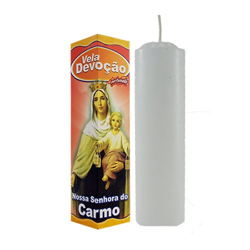 A Vela de Devoção Nossa Senhora do Carmo é produzida em parafina de alta qualidade, com aproximadamente 13 cm de altura e 3,2 cm de diâmetro, garantindo uma queima uniforme e segura.