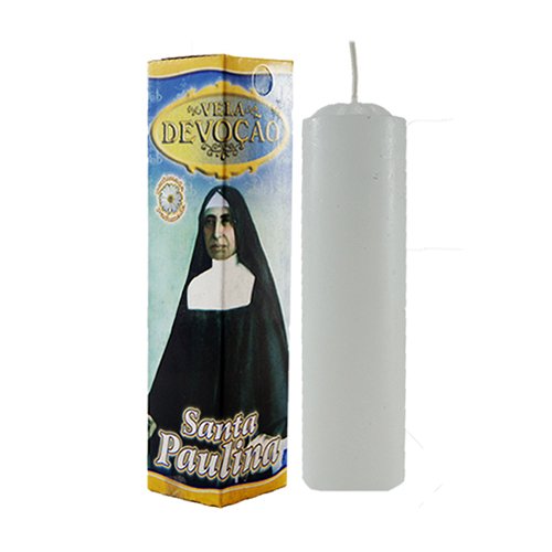A Vela de Devoção Santa Paulina é produzida em parafina de alta qualidade, com aproximadamente 13 cm de altura e 3,2 cm de diâmetro, garantindo uma queima uniforme e segura.