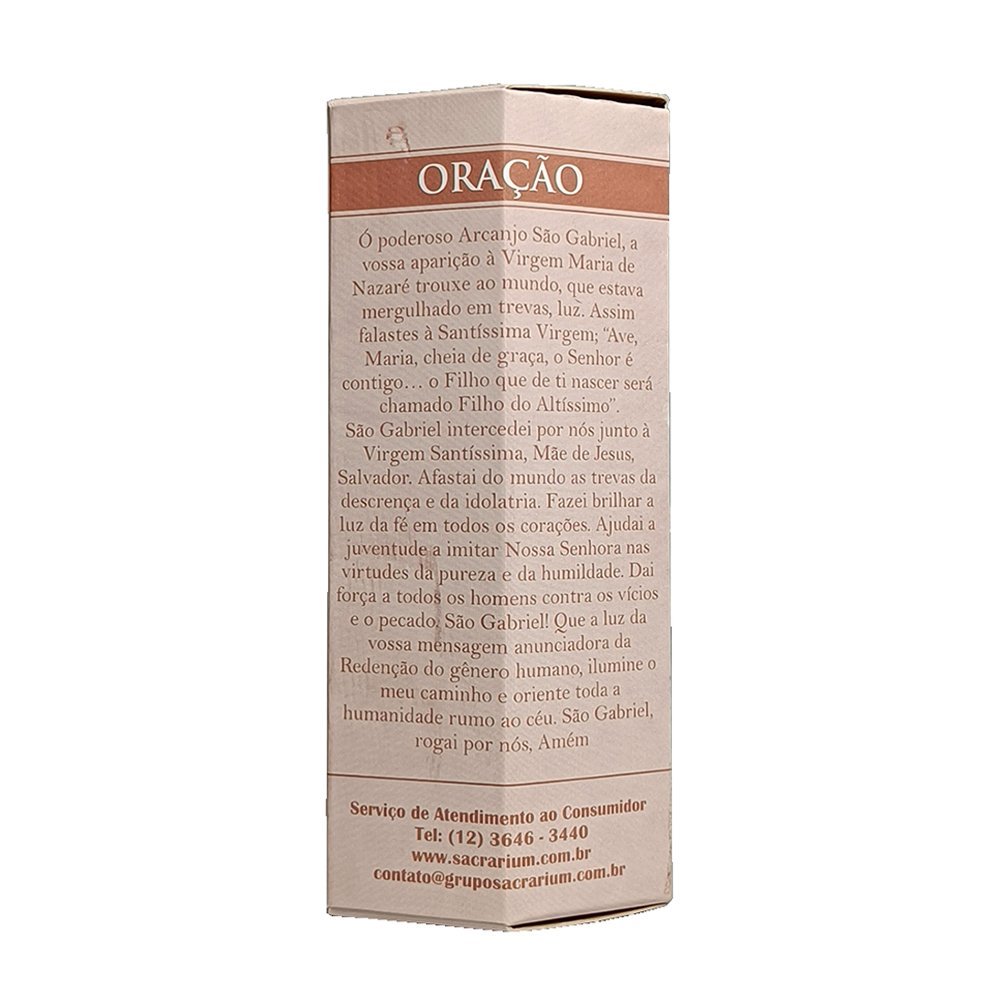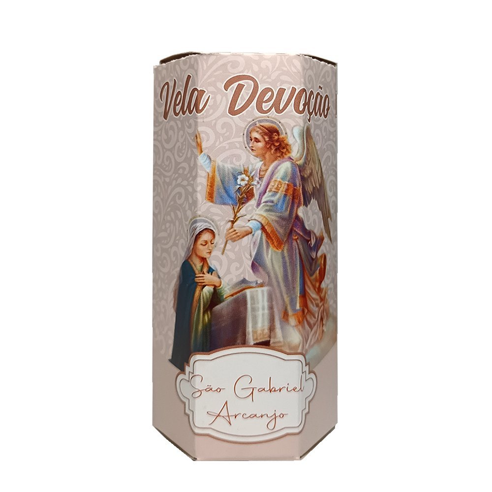 A Vela de Devoção São Gabriel Arcanjo é produzida em parafina de alta qualidade, com aproximadamente 11 cm de altura e 3,5 cm de diâmetro, garantindo uma queima uniforme e segura.