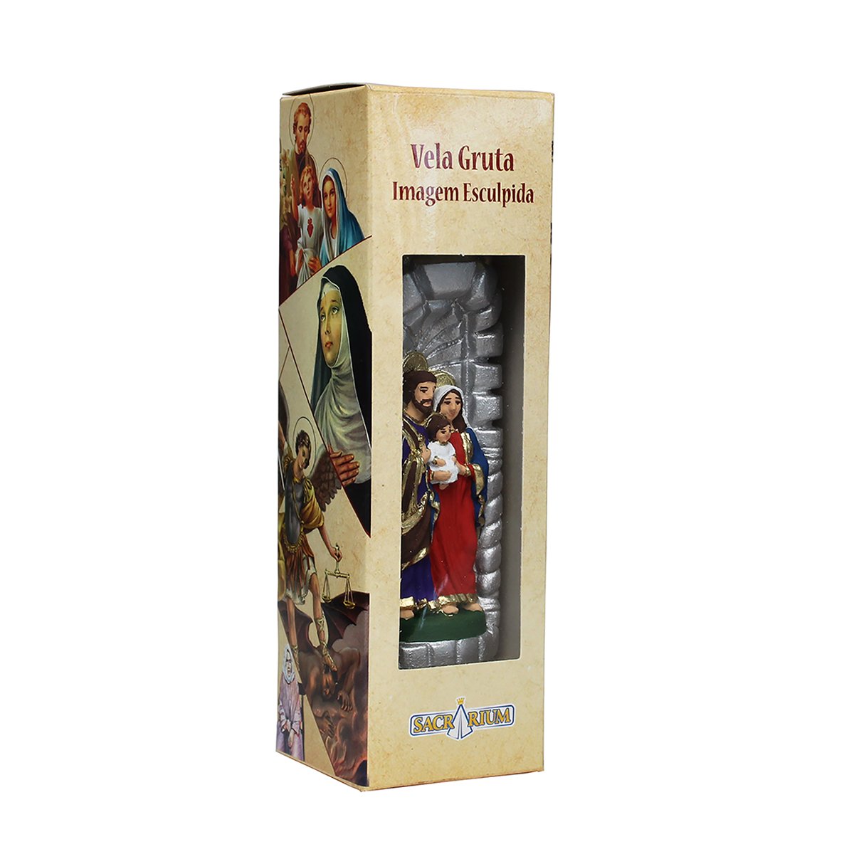 A Vela Esculpida Gruta Sagrada Família é uma peça artesanal exclusiva, produzida em parafina e ricamente decorada com detalhes em relevo e pintura manual. Cada unidade é única, podendo apresentar pequenas variações de cor e acabamento, o que valoriza ainda mais seu caráter artístico e devocional.