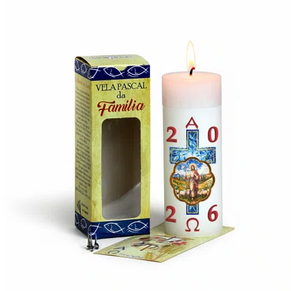 A Vela Pascal da Família representa Cristo ressuscitado. É ideal para viver o Tempo Pascal em oração, acendendo-a quando a família estiver reunida. O folheto incluso “Da Páscoa a Pentecostes” guia a família em momentos semanais de oração, com propostas para cada domingo após a Páscoa, acompanhando todo o caminho espiritual até o dia de Pentecostes. Uma peça simbólica e especial para fortalecer a fé no lar.