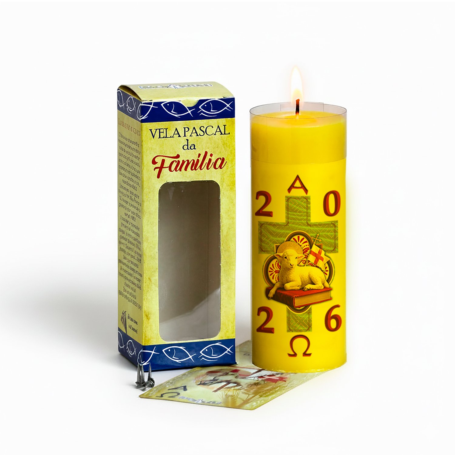 Vela Pascal da Família Cordeiro Marfim - 2026 Amarela