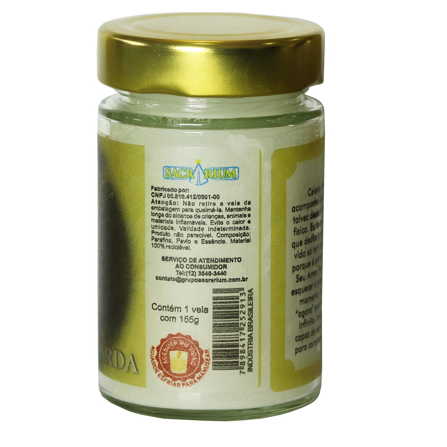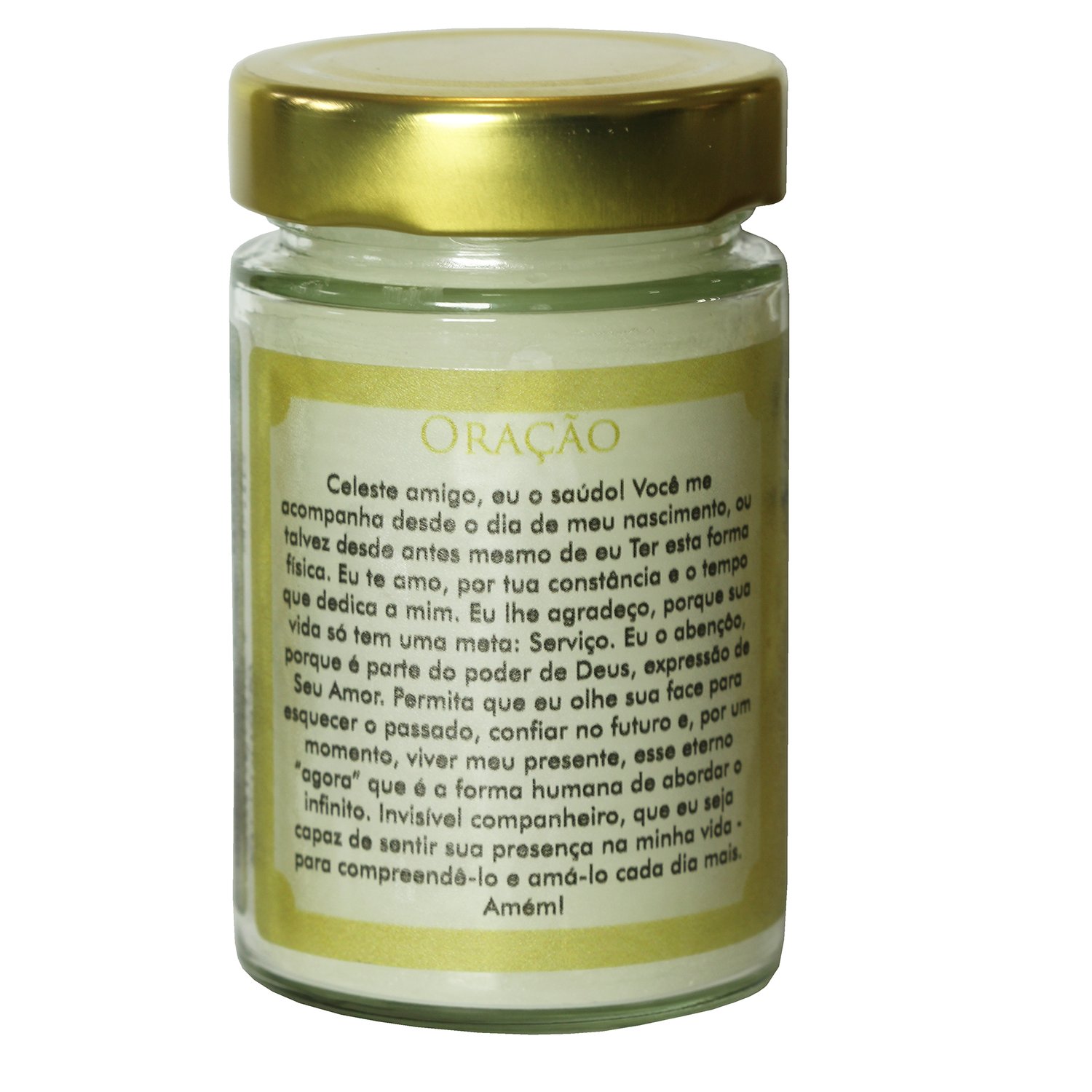 Esta vela em vidro com tampa dourada combina elegância e espiritualidade, perfeita para momentos de oração ou para presentear com carinho nesta época especial.